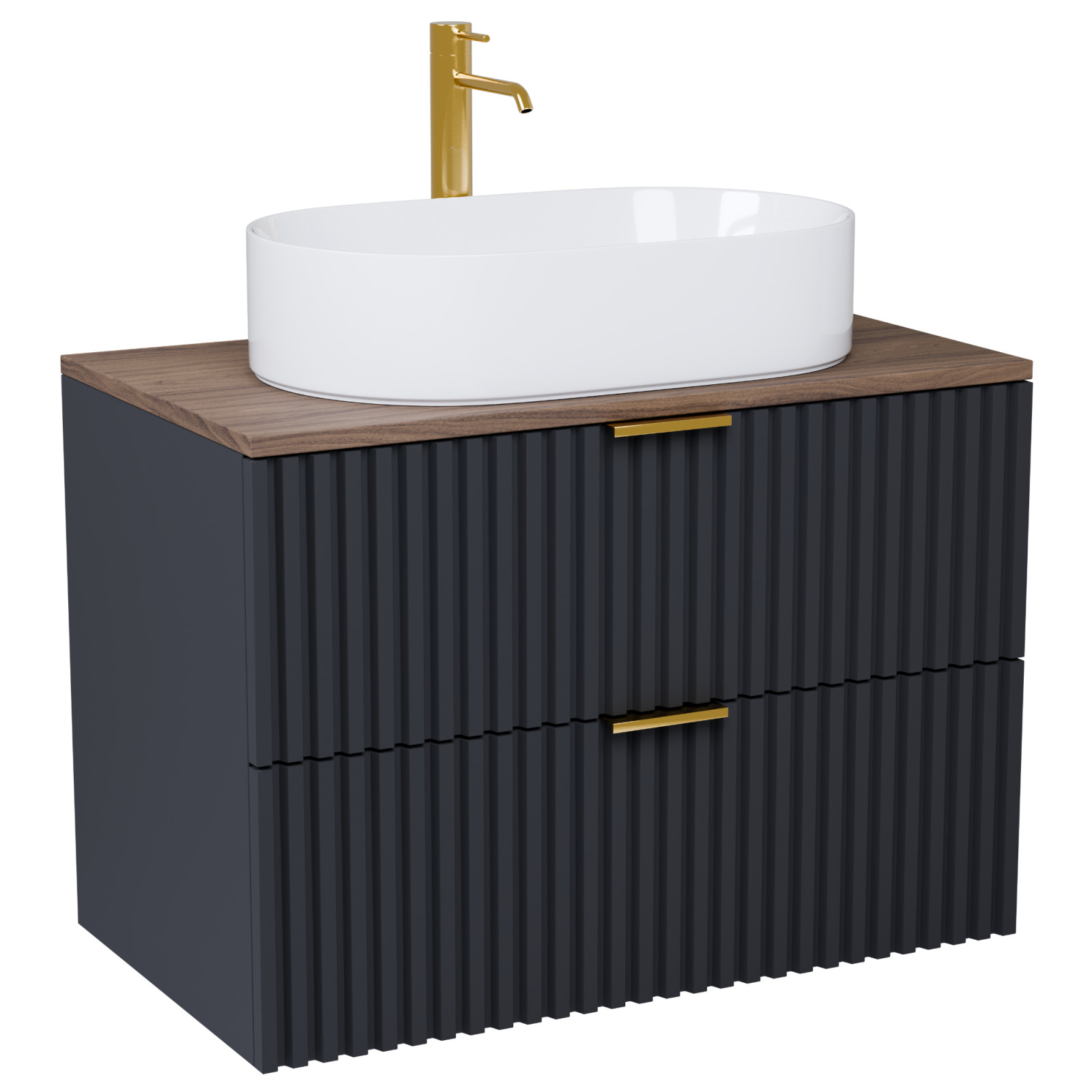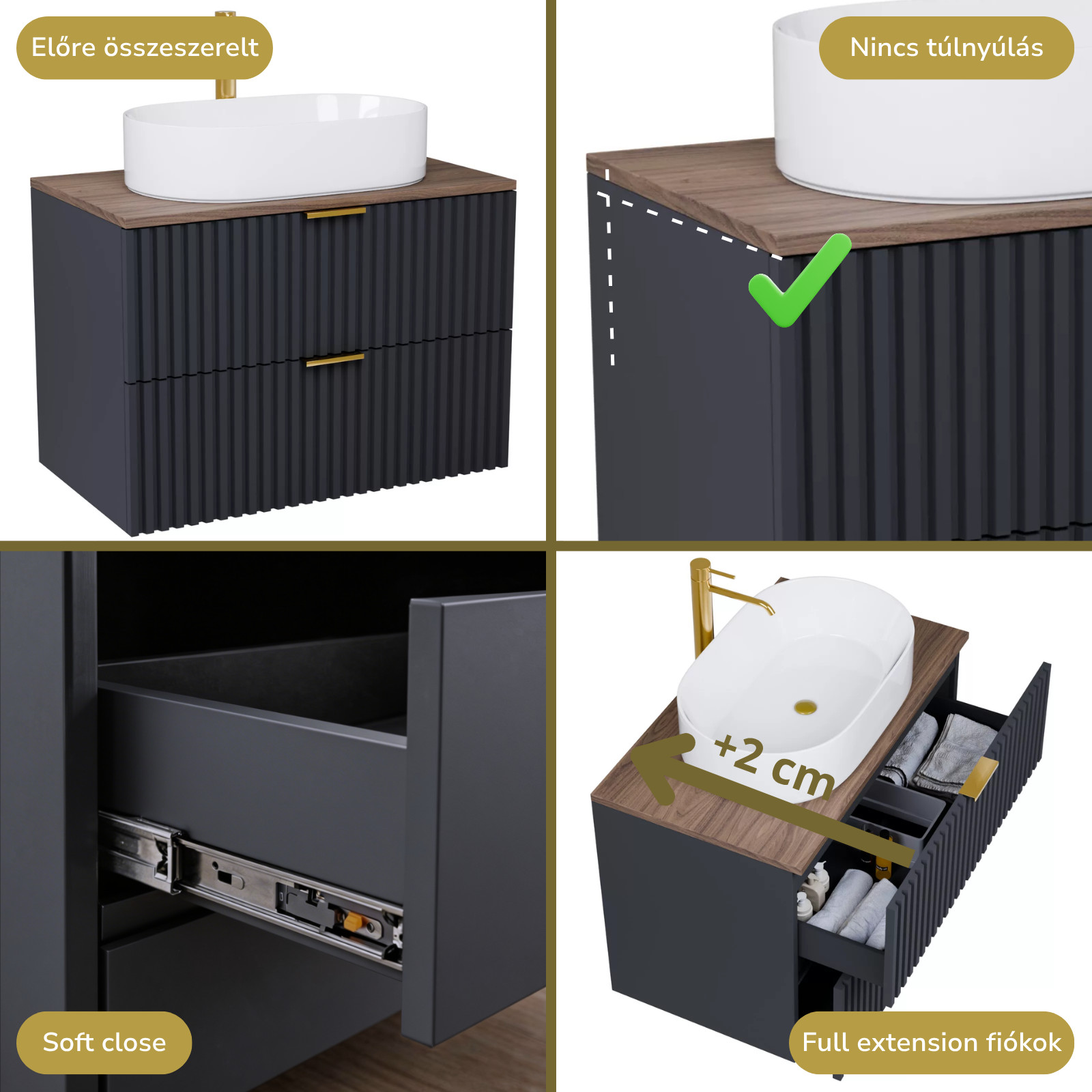 Rapallo Matt Antracit 80 komplett fürdőszoba bútor szett, szálcsiszolt arany fogantyúkkal
