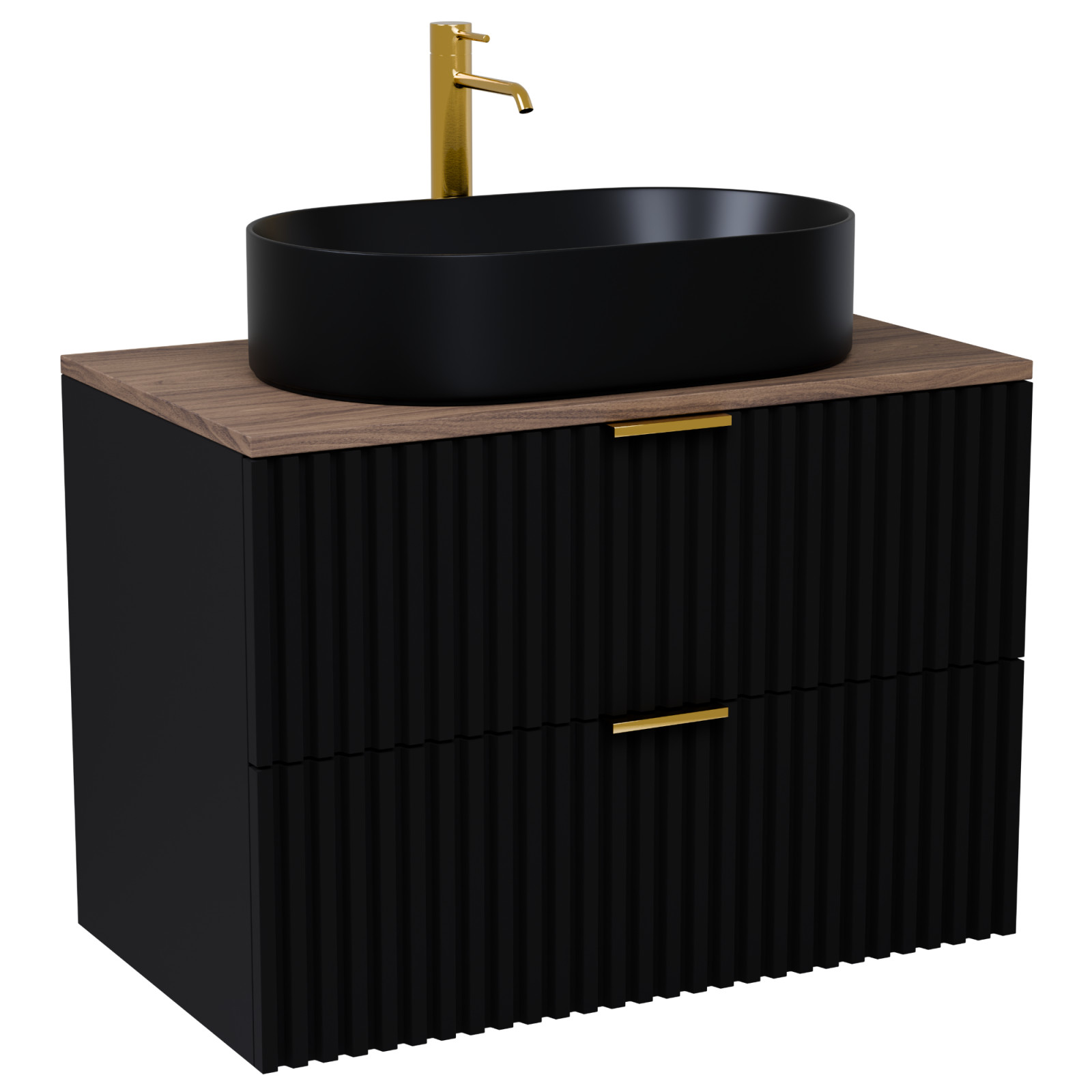 Rapallo Matt Black 80 komplett fürdőszoba bútor szett, szálcsiszolt arany fogantyúkkal