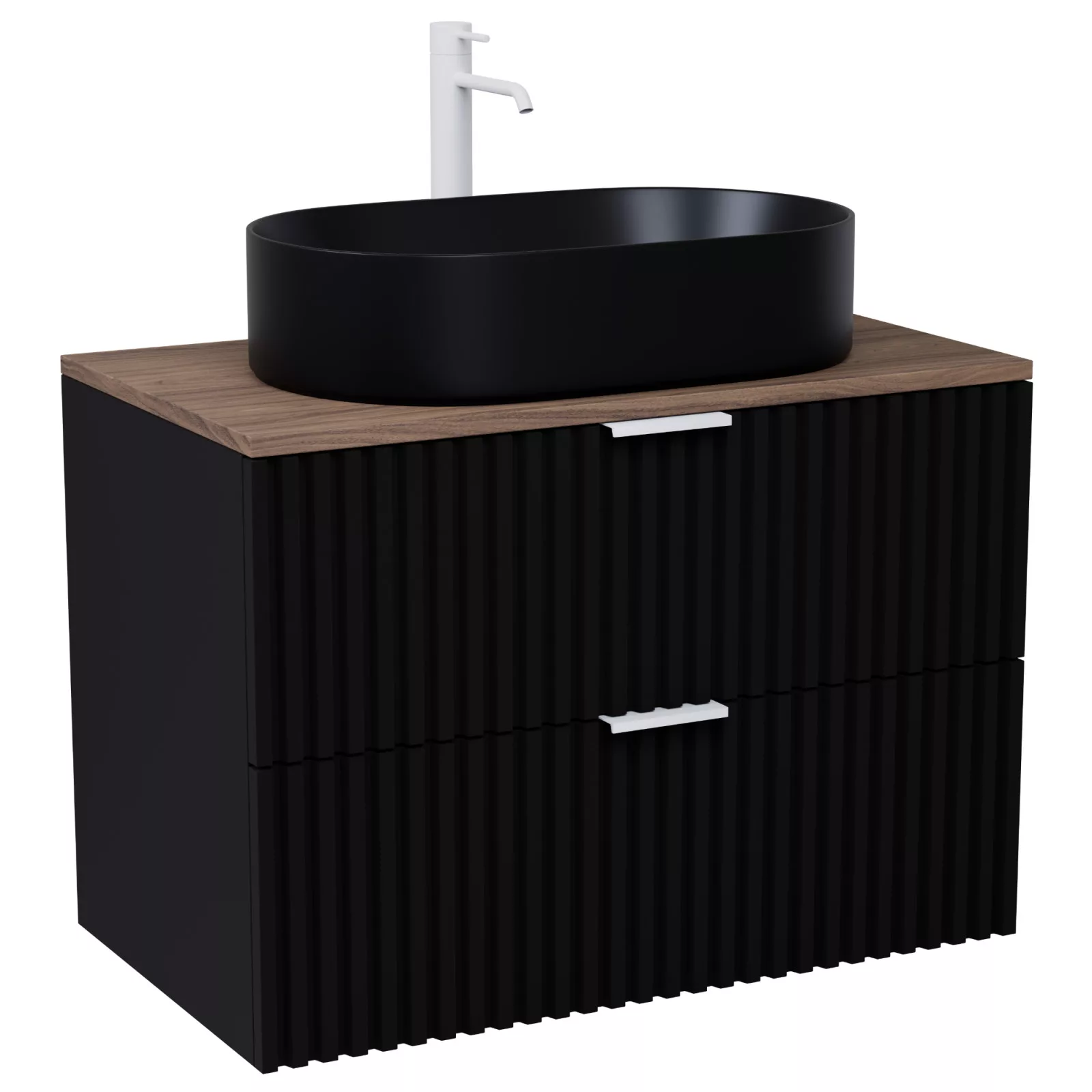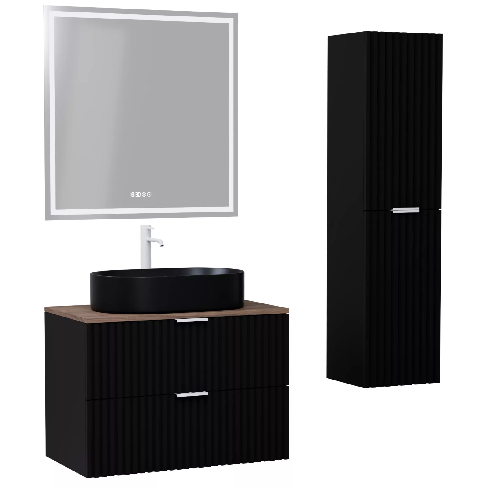 Rapallo Matt Black 80 komplett fürdőszoba bútor szett, matt fehér fogantyúkkal