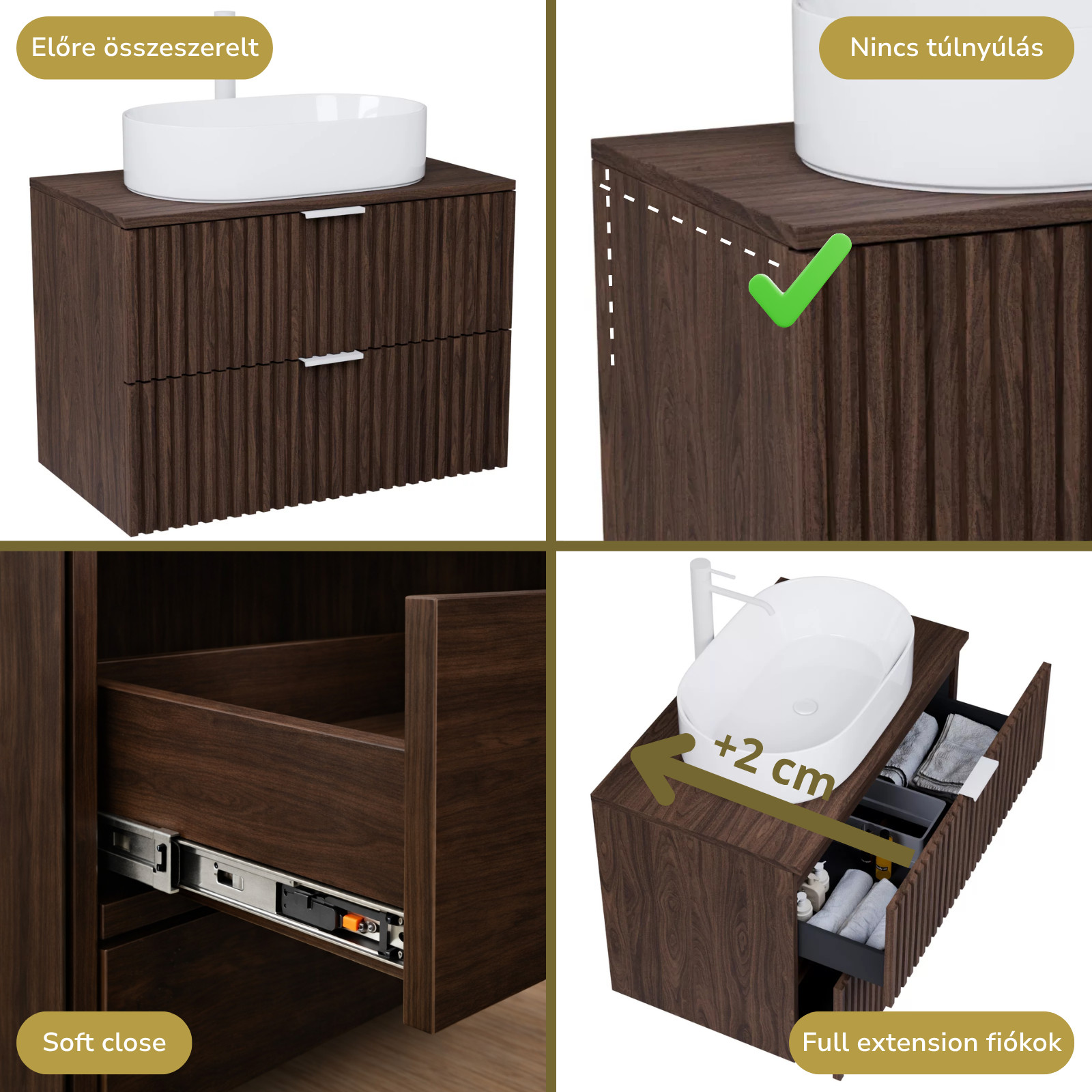 A bútort összeszerelve szállítjuk ki, így Önnek csak a mosdót és a fiók frontot kell ráhelyeznie!