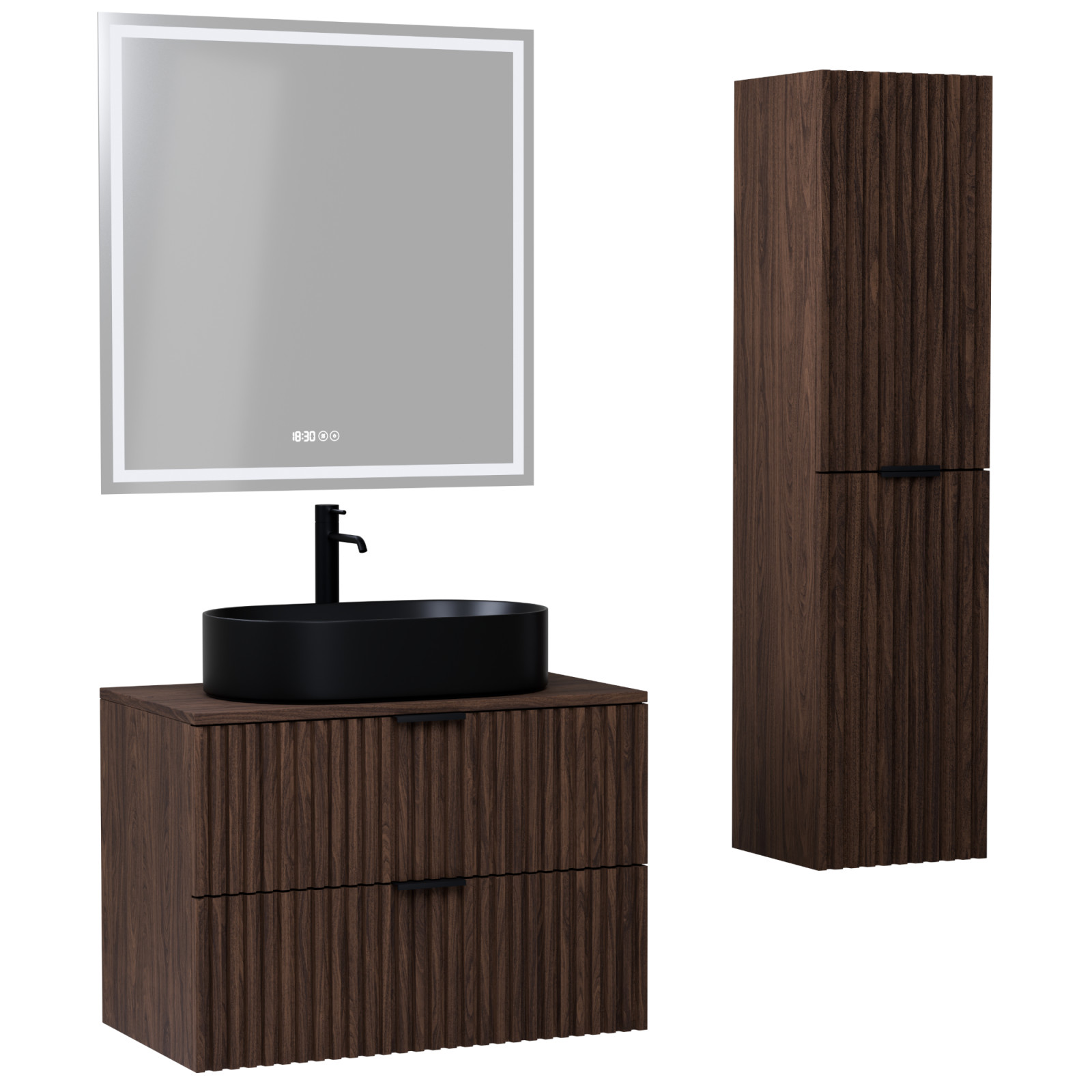 Rapallo Matt Hazel 80 komplett fürdőszoba bútor szett, matt fekete fogantyúkkal