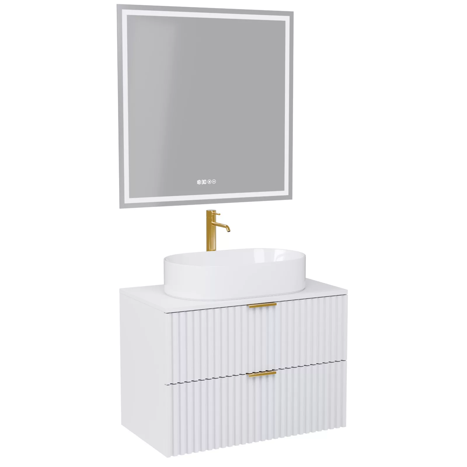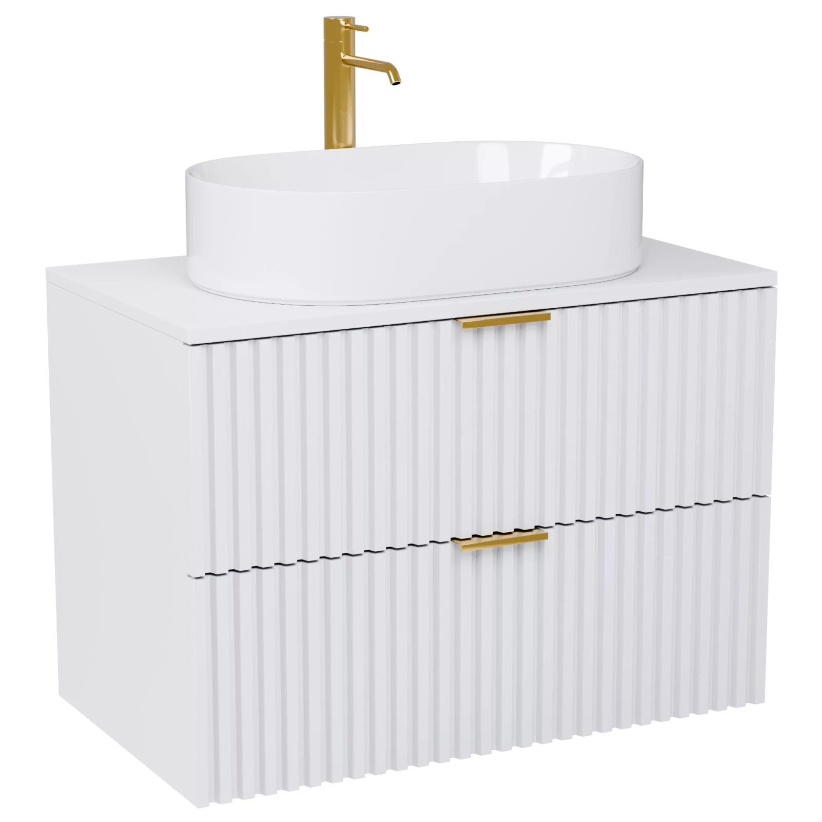 Rapallo Matt White 60 komplett fürdőszoba bútor, szálcsiszolt arany fogantyúkkal