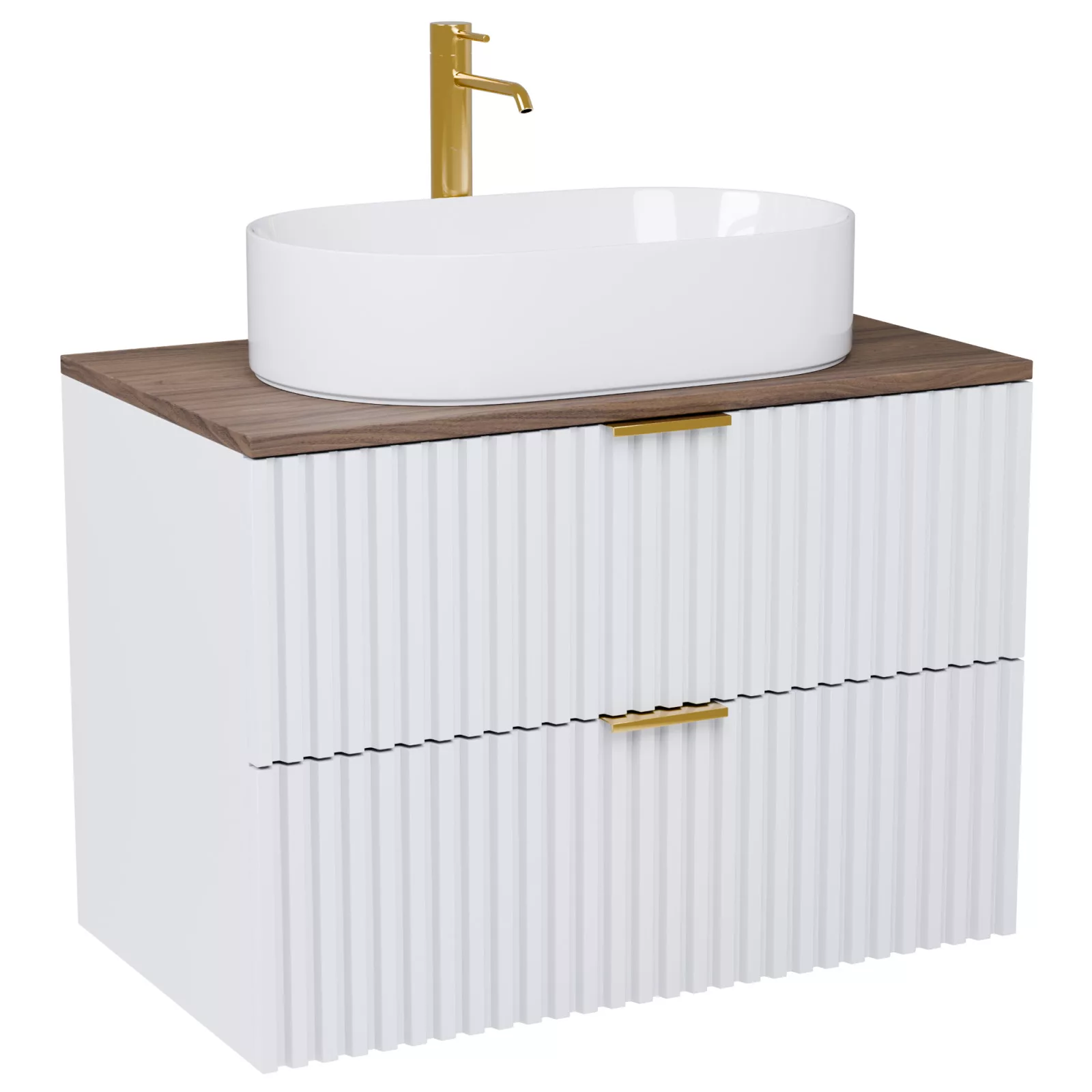 Rapallo Matt White 60 komplett fürdőszoba bútor, szálcsiszolt arany fogantyúkkal