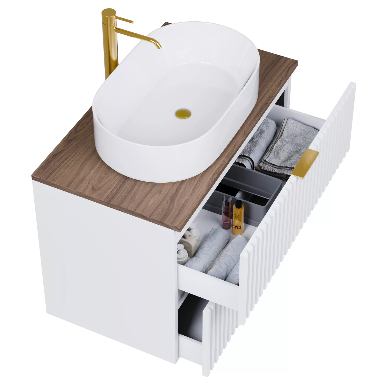 A fiókok bástyás kialakításának köszönhetően teljesen új szintre emeli a a fürdűszobáját, megteremtve a modern és kifinomult megjelenést.