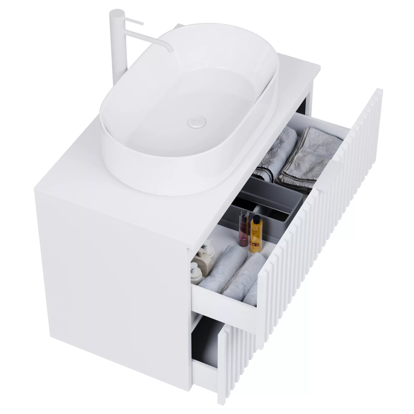 A fiókok bástyás kialakításának köszönhetően teljesen új szintre emeli a a fürdűszobáját, megteremtve a modern és kifinomult megjelenést.