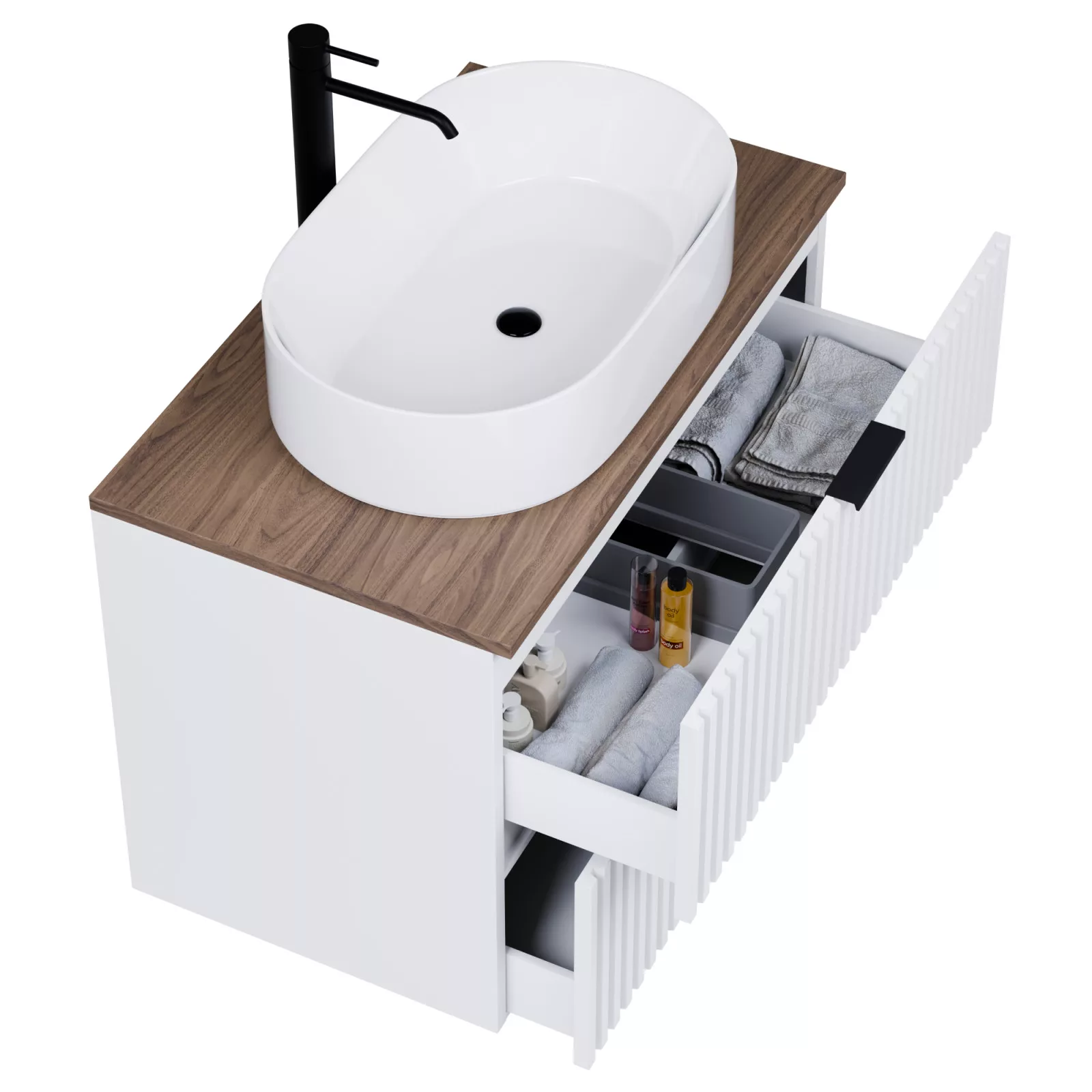A fiókok bástyás kialakításának köszönhetően teljesen új szintre emeli a a fürdűszobáját, megteremtve a modern és kifinomult megjelenést.