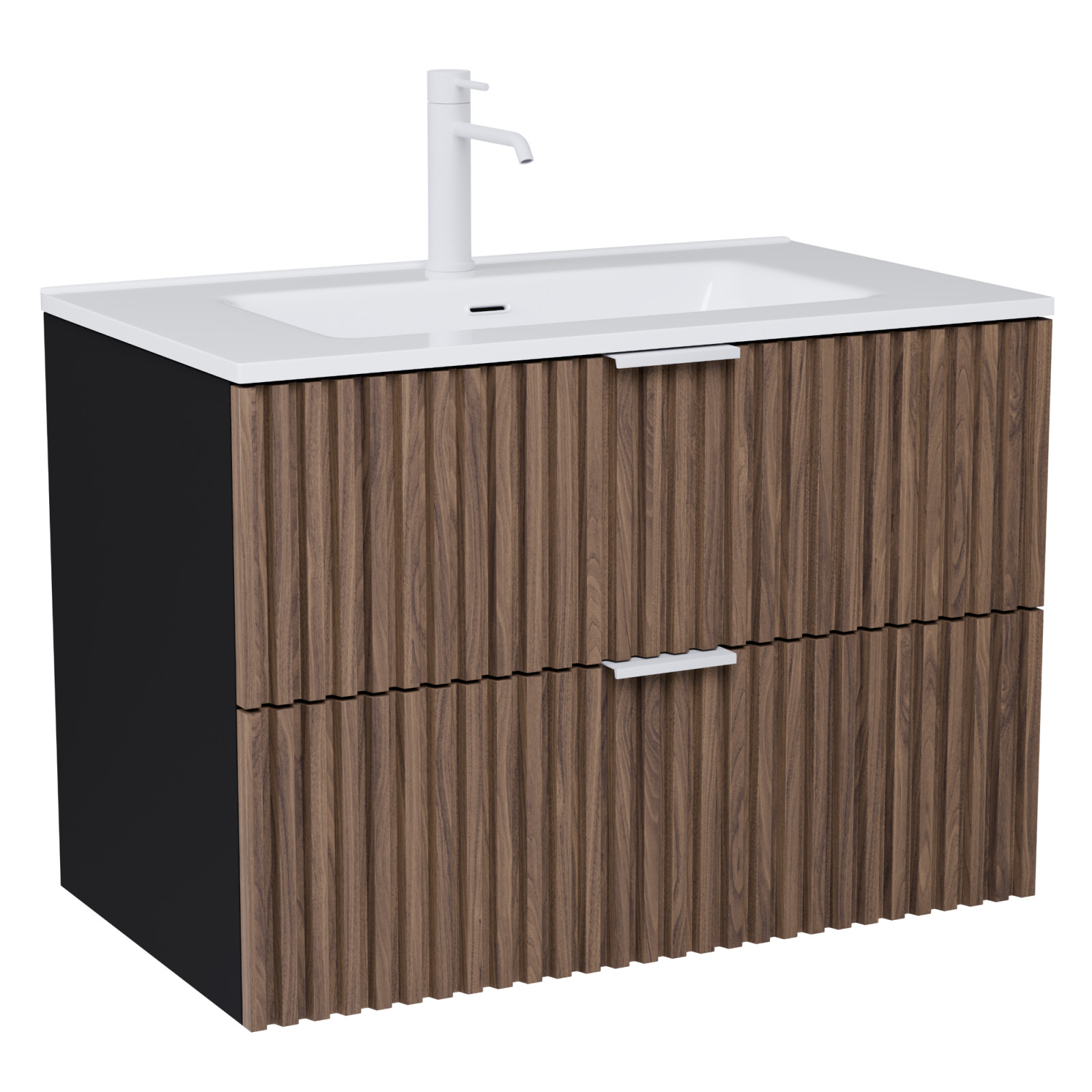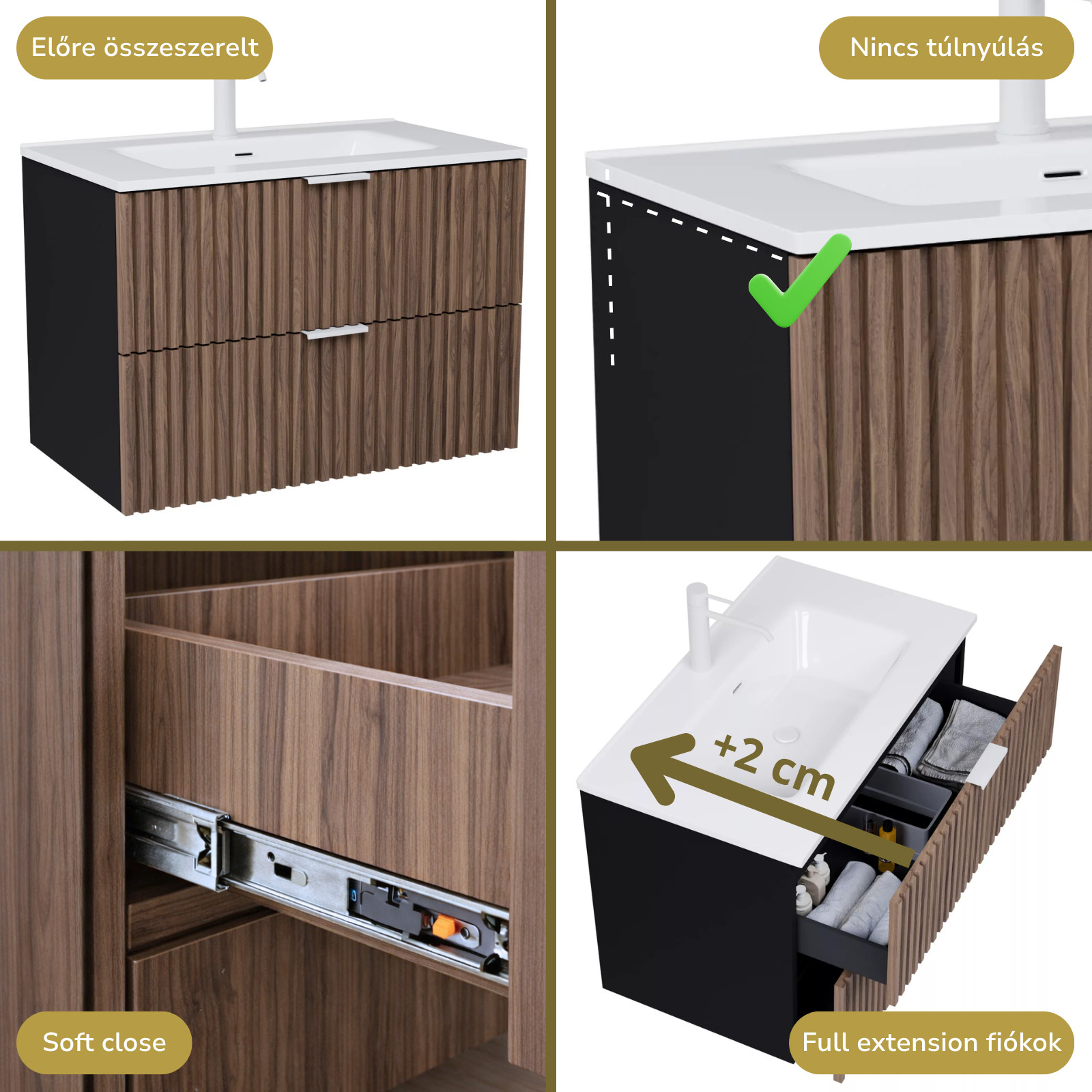 Ravello Black-Oak 80 mosdószekrény mosdóval és matt fehér fogantyúkkal