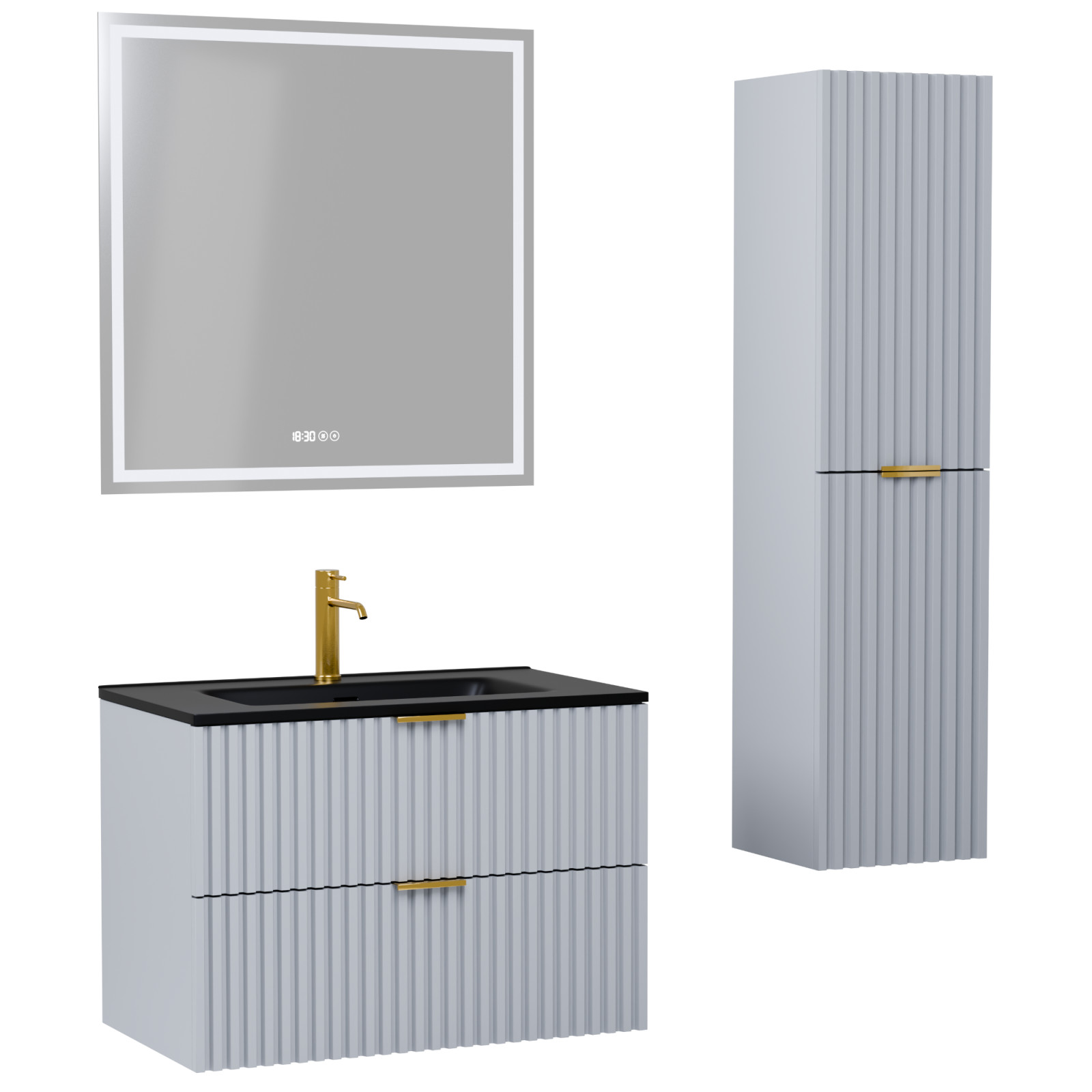 Ravello Fume Grey 60 komplett fürdőszoba bútor szett, szálcsiszolt arany fogantyúkkal