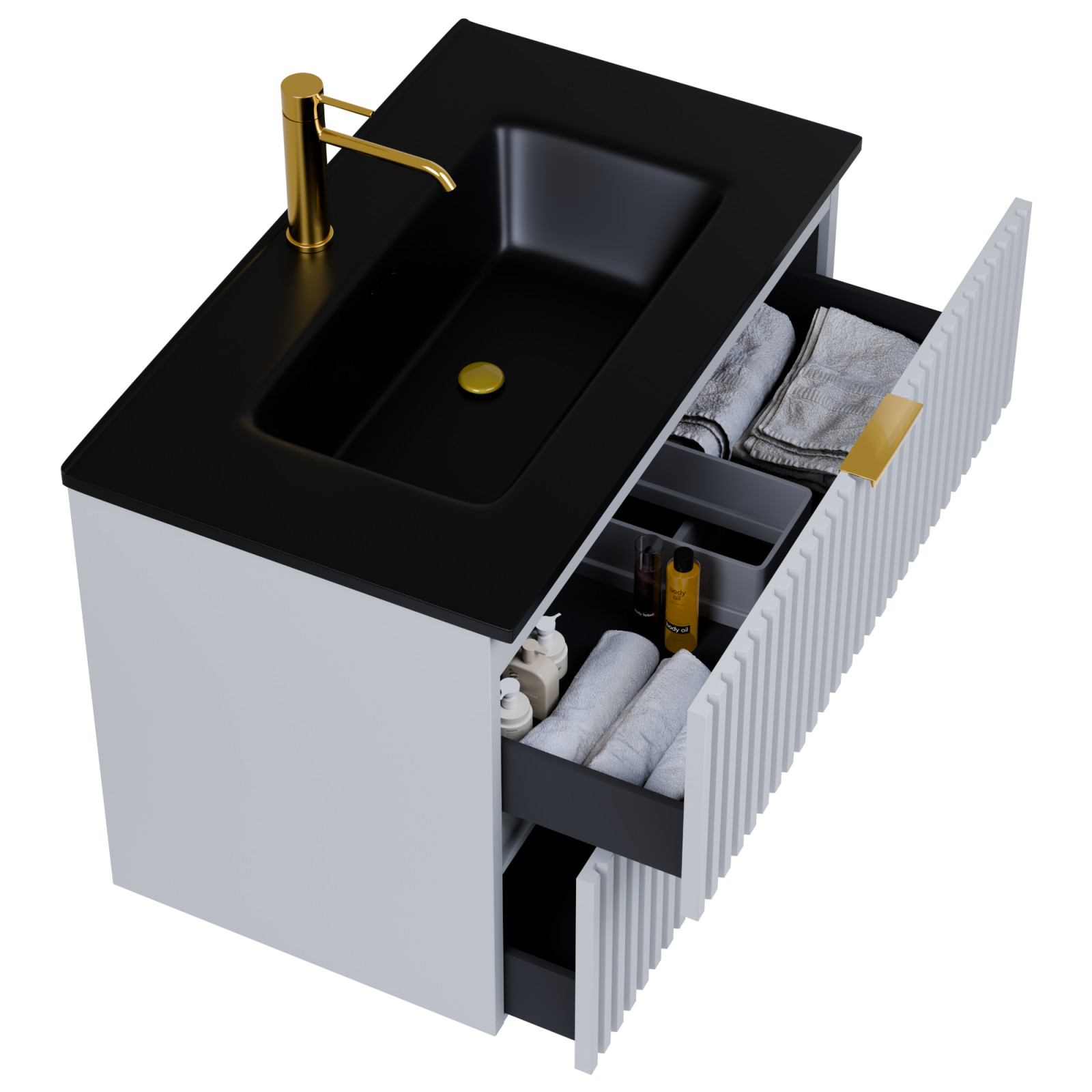 A fiókok bástyás kialakításának köszönhetően teljesen új szintre emeli a a fürdűszobáját, megteremtve a modern és kifinomult megjelenést.