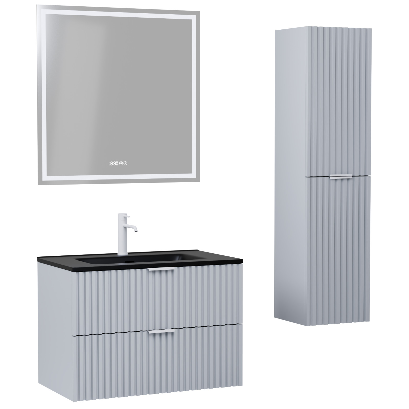Ravello Fume Grey 60 komplett fürdőszoba bútor szett, matt fehér fogantyúkkal