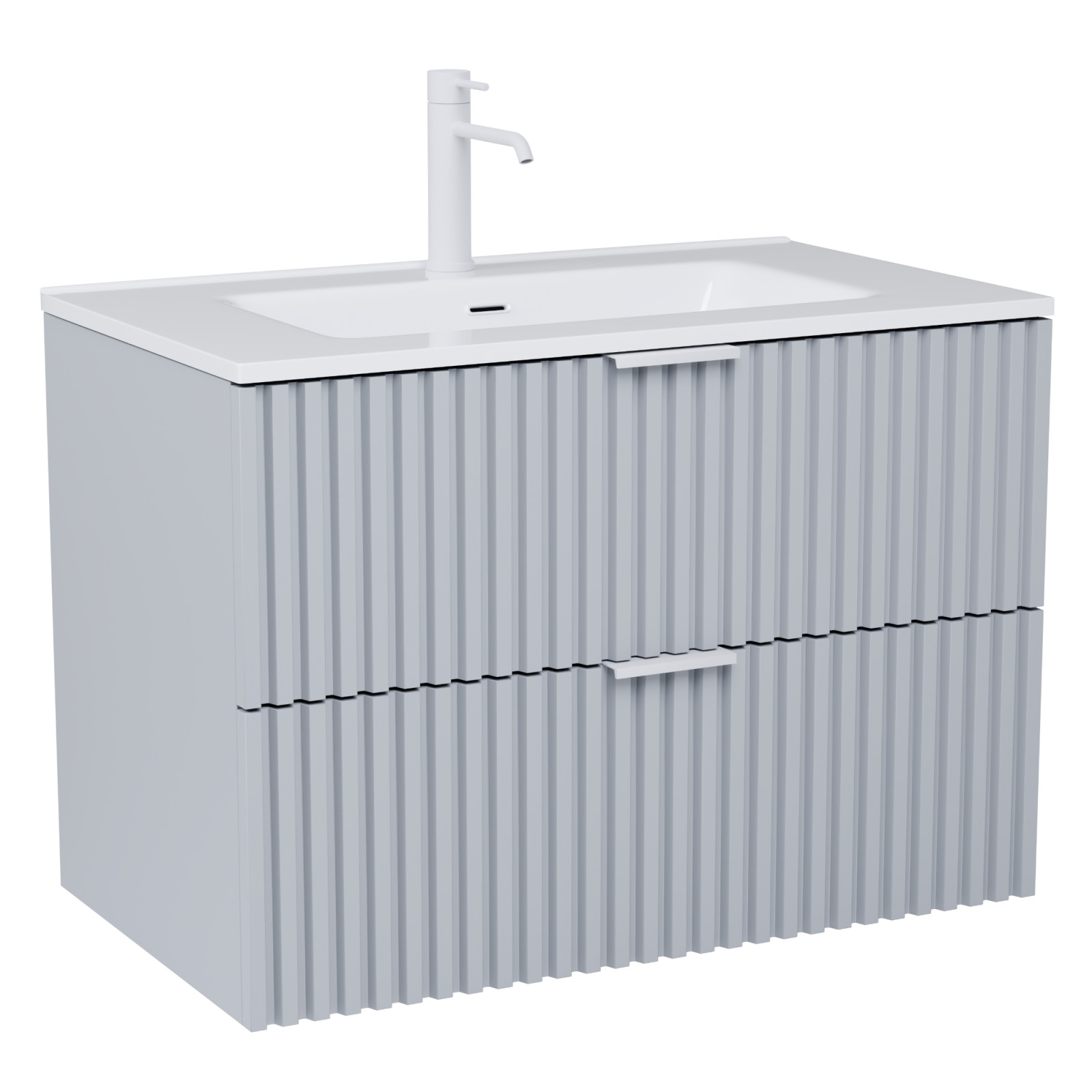 Ravello Fume Grey 80 mosdószekrény mosdóval és matt fehér fogantyúkkal