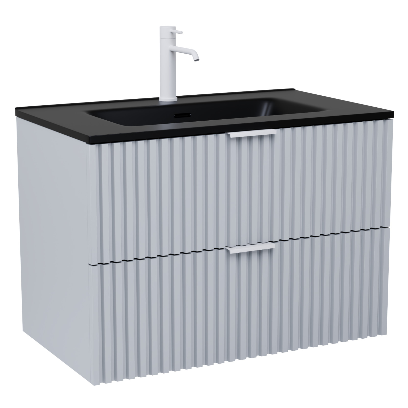 HD Ravello Fume Grey 80 fali mosdószekrény matt fehér fogantyúkkal és matt fekete slim mosdóval