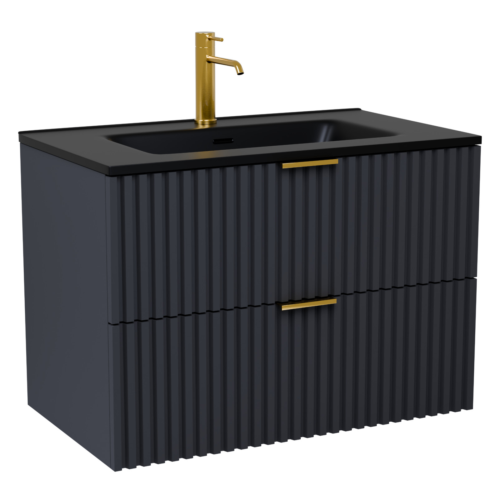 HD Ravello Matt Antracit 60 fali mosdószekrény szálcsiszolt arany fogantyúkkal és matt fekete slim mosdóval
