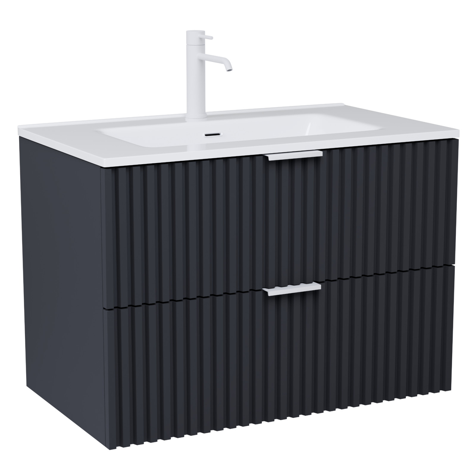 HD Ravello Matt Antracit 60 fali mosdószekrény matt fehér fogantyúkkal és fényes fehér slim mosdóval