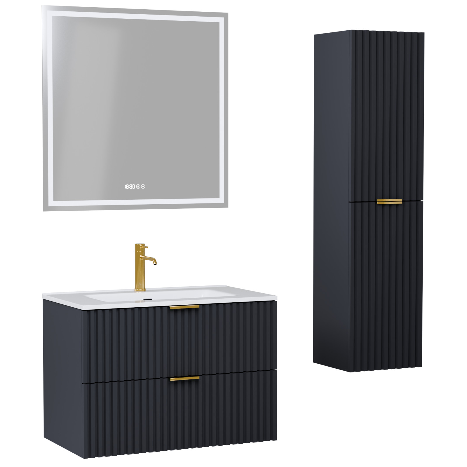 Napjainkban a praktikum mellett a fürdőszoba esztétikus megjelenése is fontos szempont. A függesztett bútorok egyre elterjedtebbé válnak, mivel számos előnnyel rendelkeznek, ide sorolható a modern, könnyed megjelenés és az egyszerű tisztítás . A függesztett fürdőszobai bútorok a klasszikus és modernebb stílusú fürdőszobákban is megállják a helyüket egyaránt. Nagyfokú rugalmasság jellemzi őket, mivel szinte bárhol elhelyezhetők a fürdőszobán belül. További előnyük, hogy soft close (csillapítós) zsanérral felszereltek, így becsukáskor az ajtó vagy fiók finoman záródik be, csökkentve a terhelést és növelve az élettartamot . A szekrény fehér és matt fekete mosdóval, illetve mosdópulttal is szabadon kombinálható ízlés szerint. A teljesség érdekében a mosdószekrényekhez illő LED okostükröt és magasszekrényt is választhatunk, hogy a fürdőszobában lévő bútorok egy szemet gyönyörködtető egységet alkossanak.