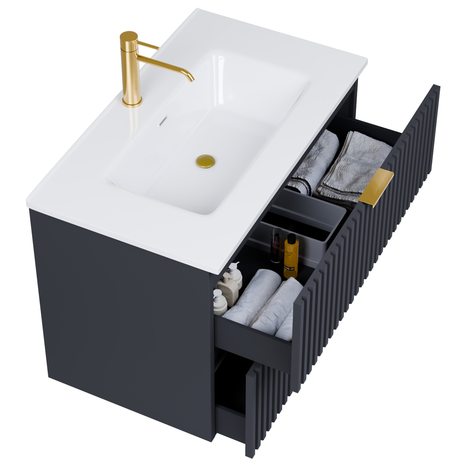 A fiókok bástyás kialakításának köszönhetően teljesen új szintre emeli a a fürdűszobáját, megteremtve a modern és kifinomult megjelenést.