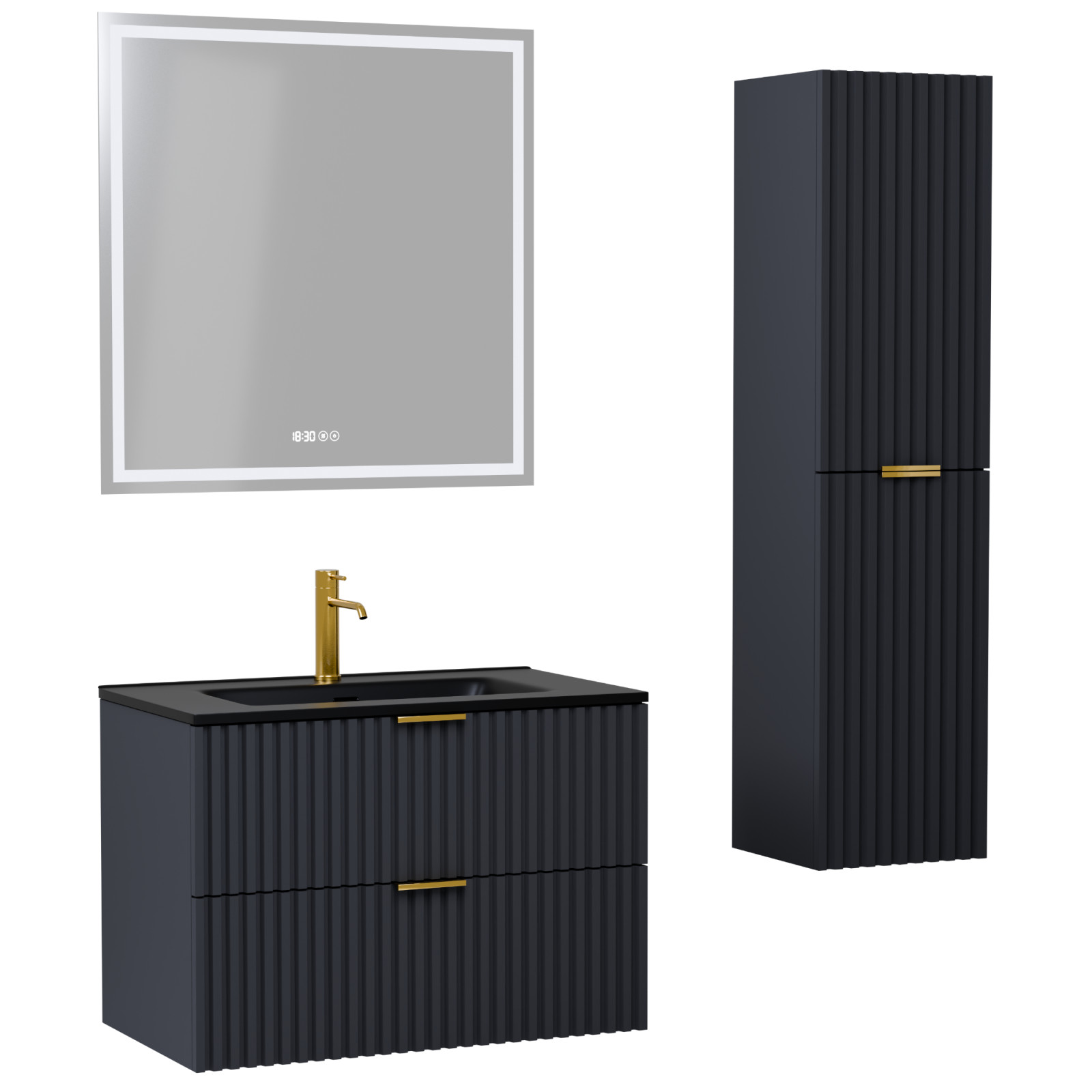 Ravello Matt Antracit 60 komplett fürdőszoba bútor szett, szálcsiszolt arany fogantyúkkal