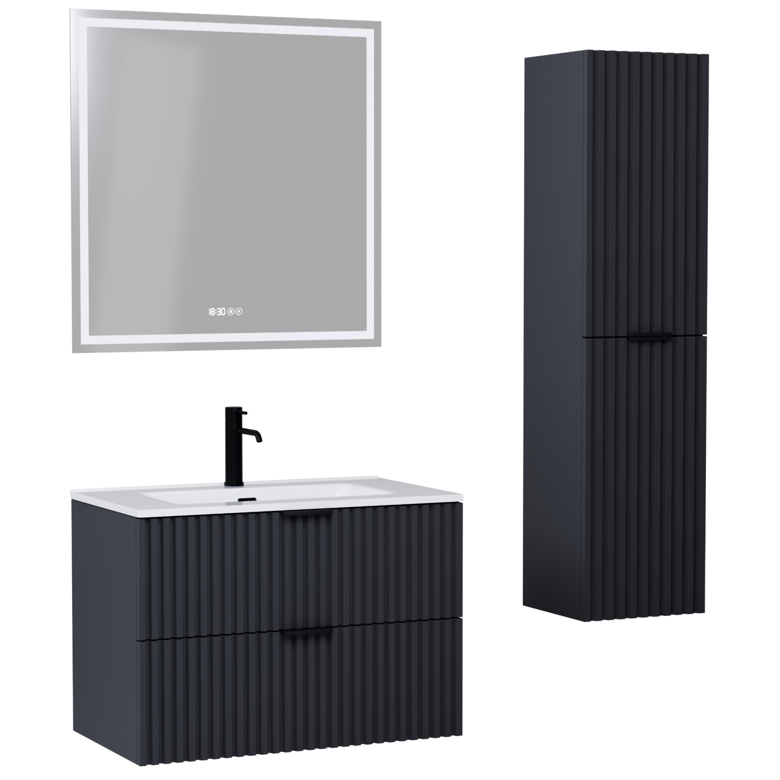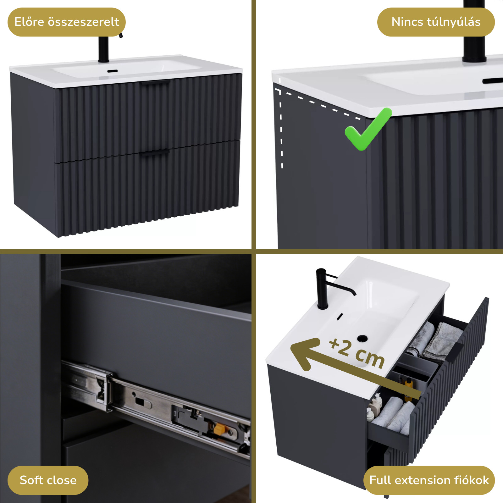 Ravello Matt Antracit 60 komplett fürdőszoba bútor szett, matt fekete fogantyúkkal