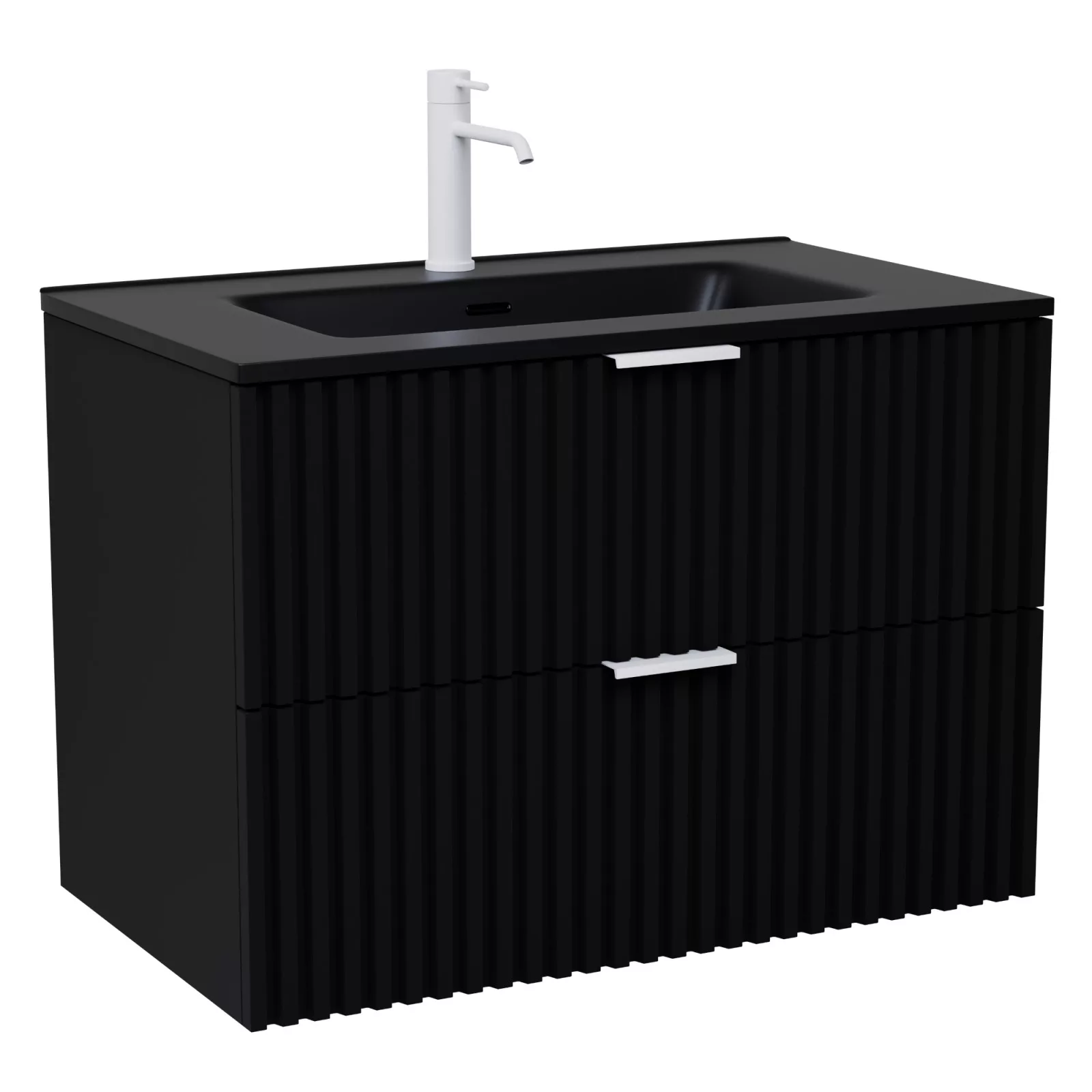 HD Ravello Matt Black 60 fali mosdószekrény matt fehér fogantyúkkal és matt fekete slim mosdóval