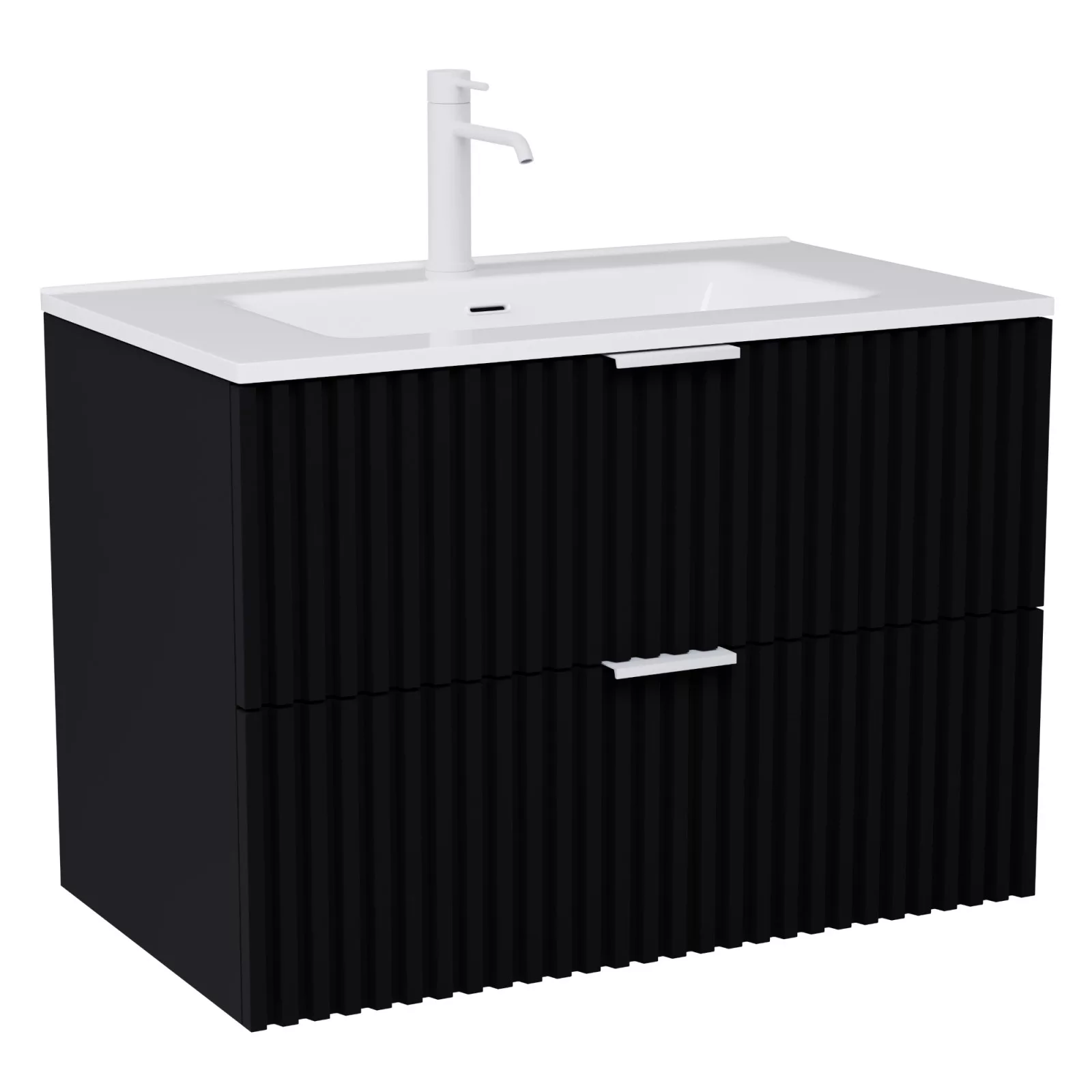 Ravello Matt Black 60 komplett fürdőszoba bútor, matt fehér fogantyúkkal