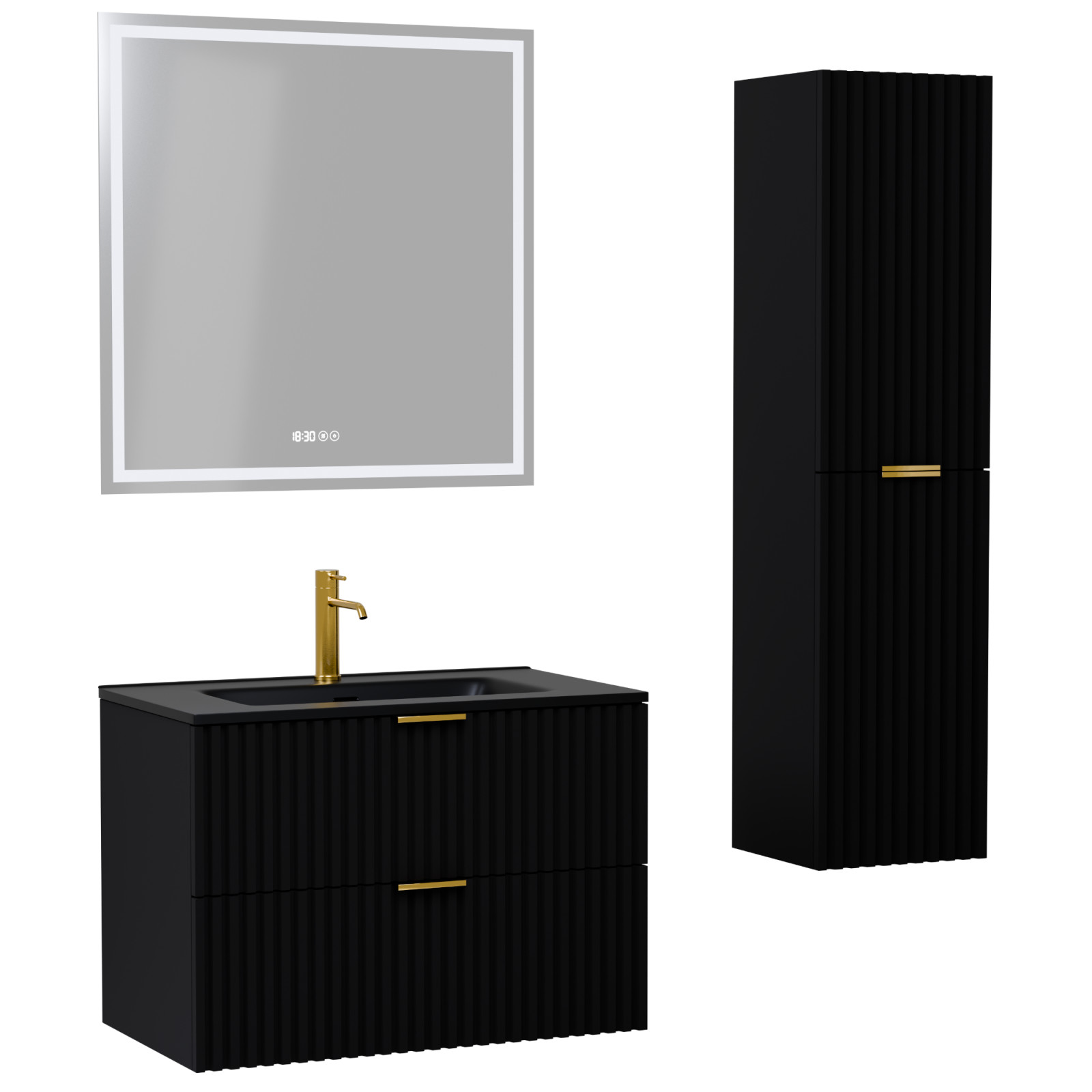 Ravello Matt Black 60 komplett fürdőszoba bútor szett, szálcsiszolt arany fogantyúkkal