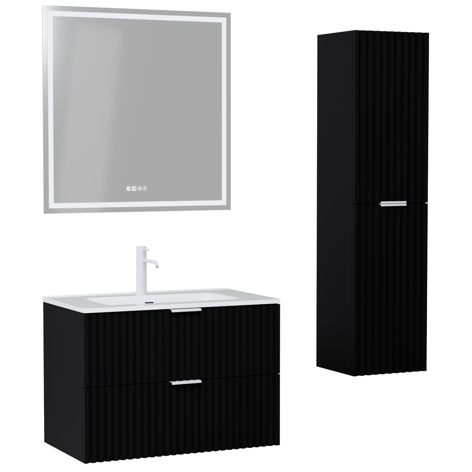 Ravello Matt Black 60 komplett fürdőszoba bútor szett, matt fehér fogantyúkkal