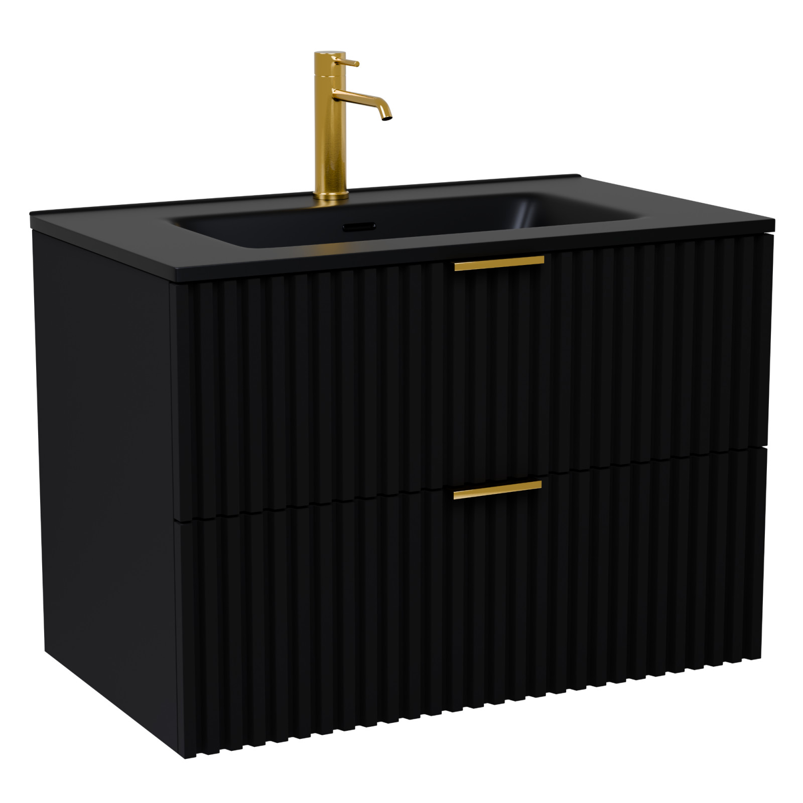 HD Ravello Matt Black 80 fali mosdószekrény szálcsiszolt arany fogantyúkkal és matt fekete slim mosdóval