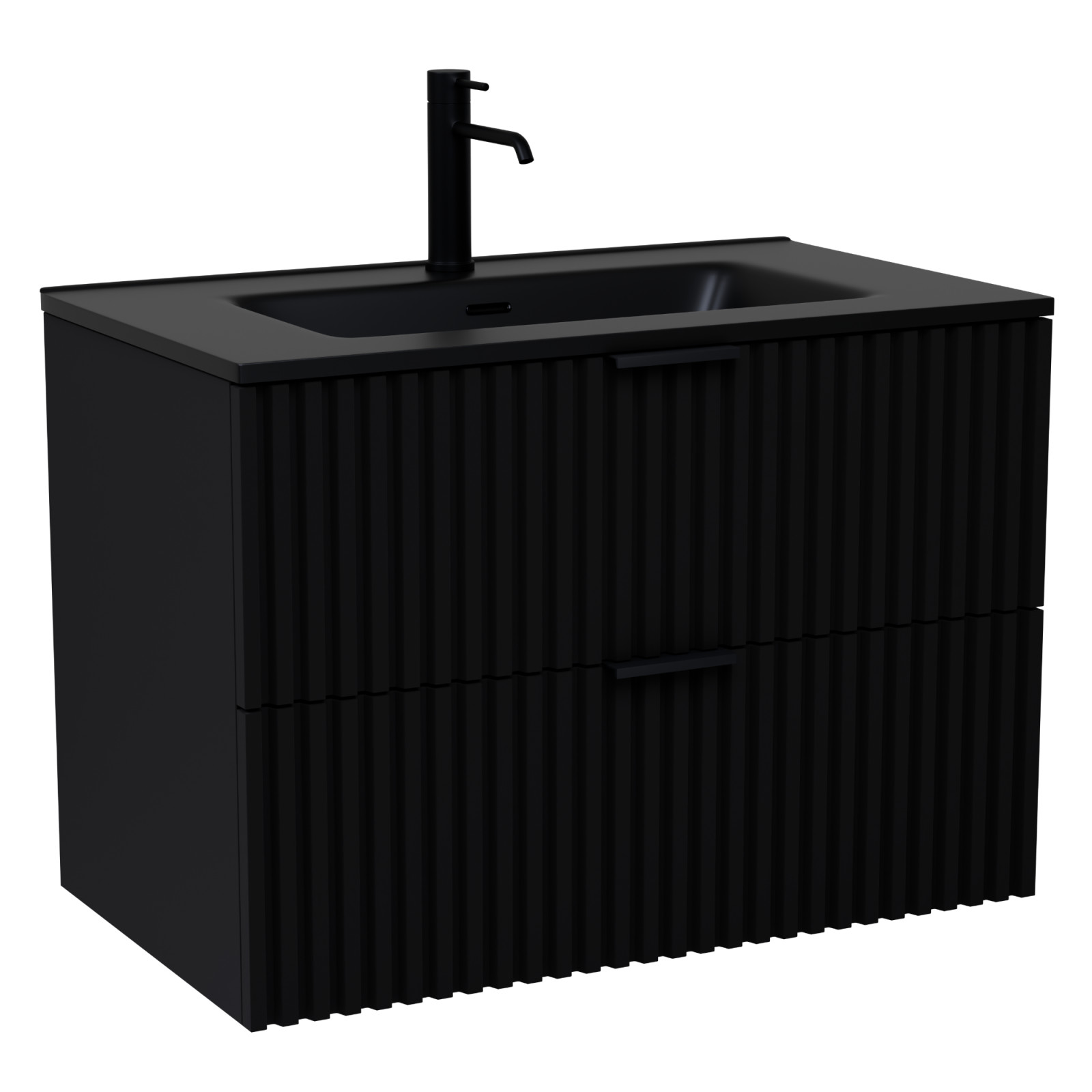 Ravello Matt Black 80 mosdószekrény mosdóval és matt fekete fogantyúkkal