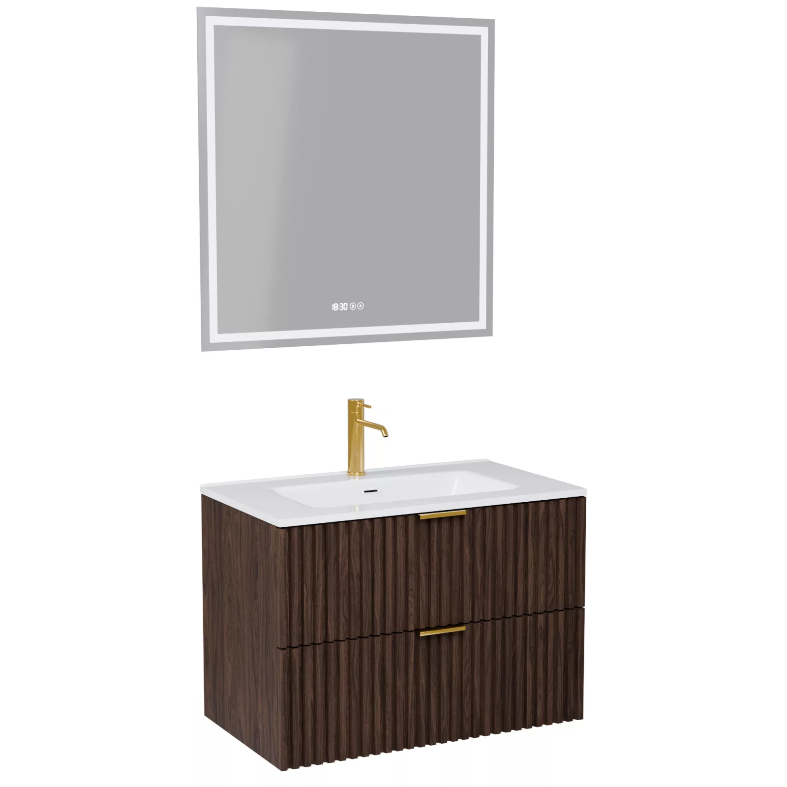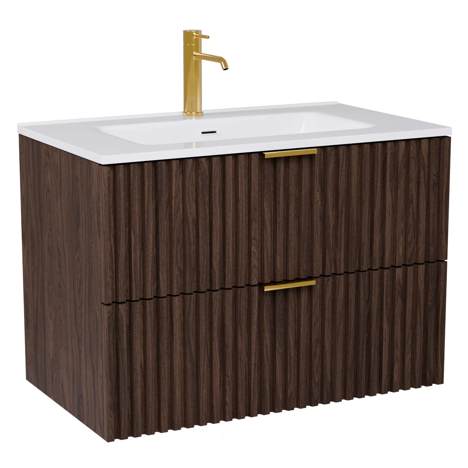 Ravello Matt Hazel 60 komplett fürdőszoba bútor, szálcsiszolt arany fogantyúkkal