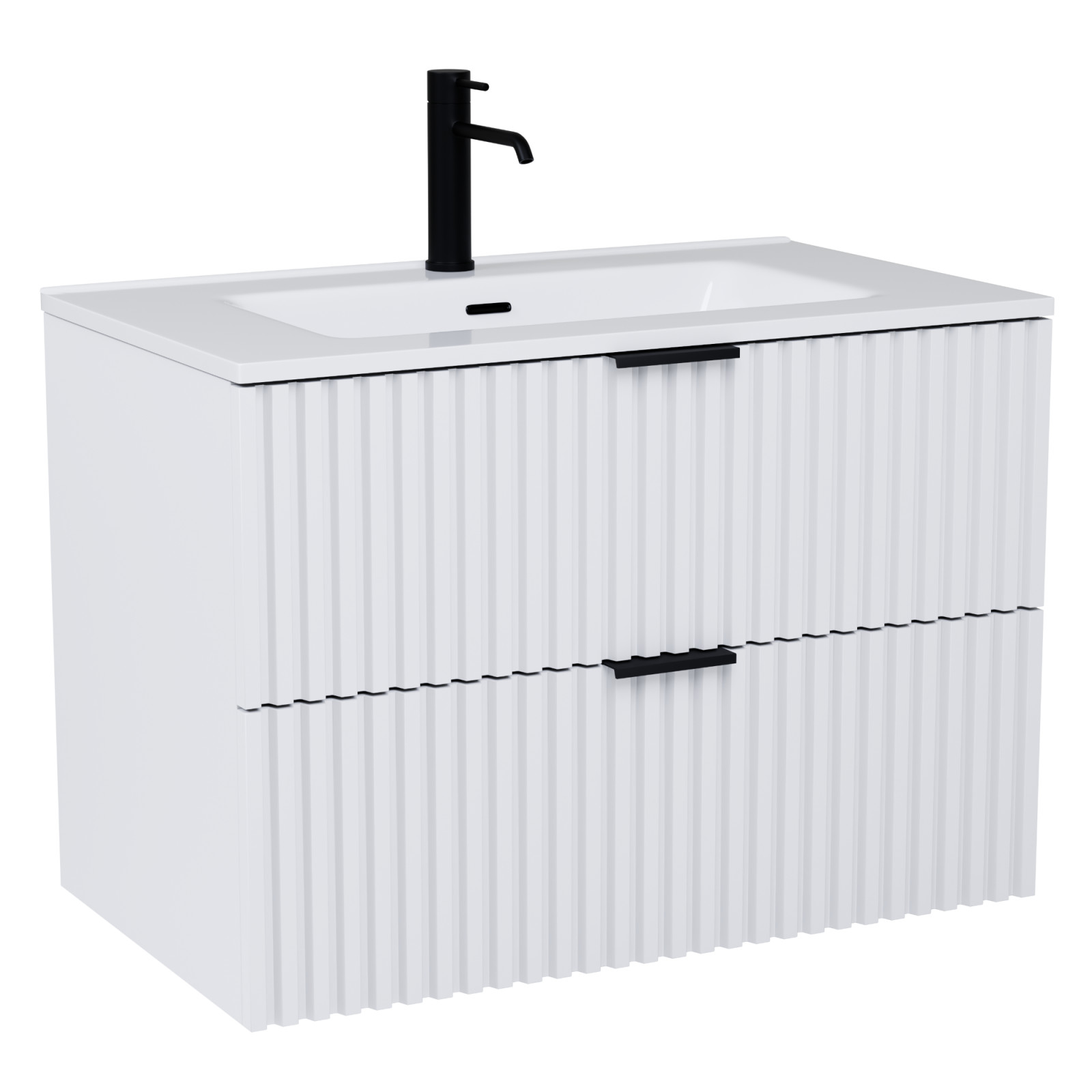 Ravello Matt White 60 mosdószekrény mosdóval és matt fekete fogantyúkkal