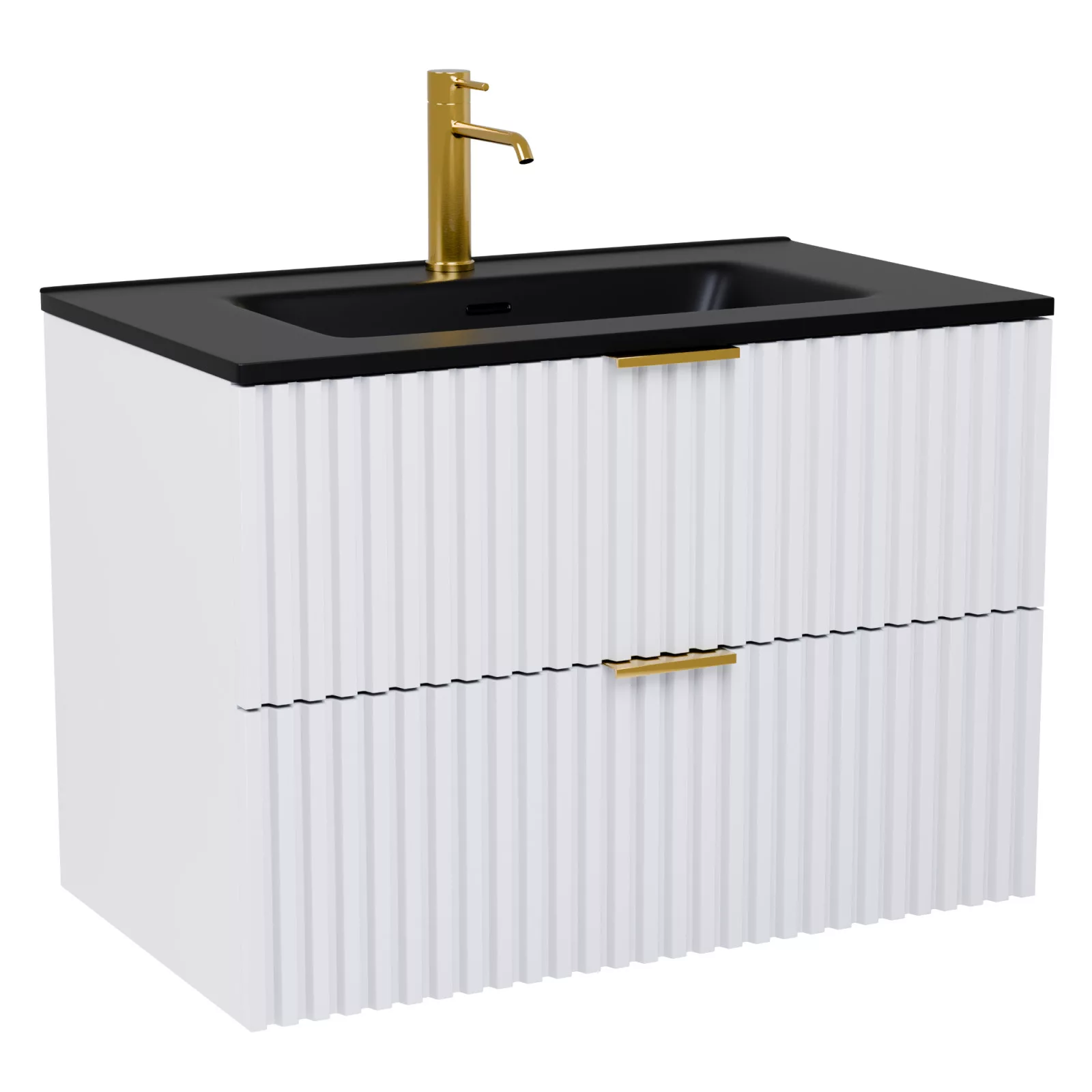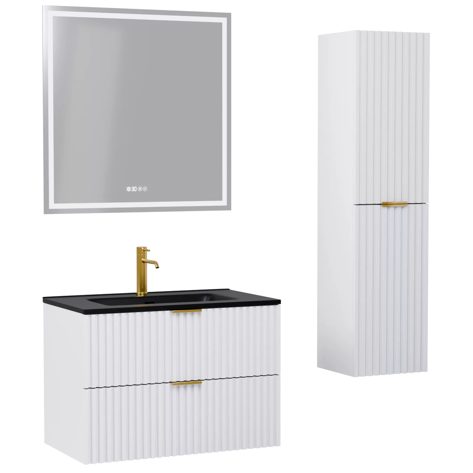 Ravello Matt White 60 komplett fürdőszoba bútor szett, szálcsiszolt arany fogantyúkkal