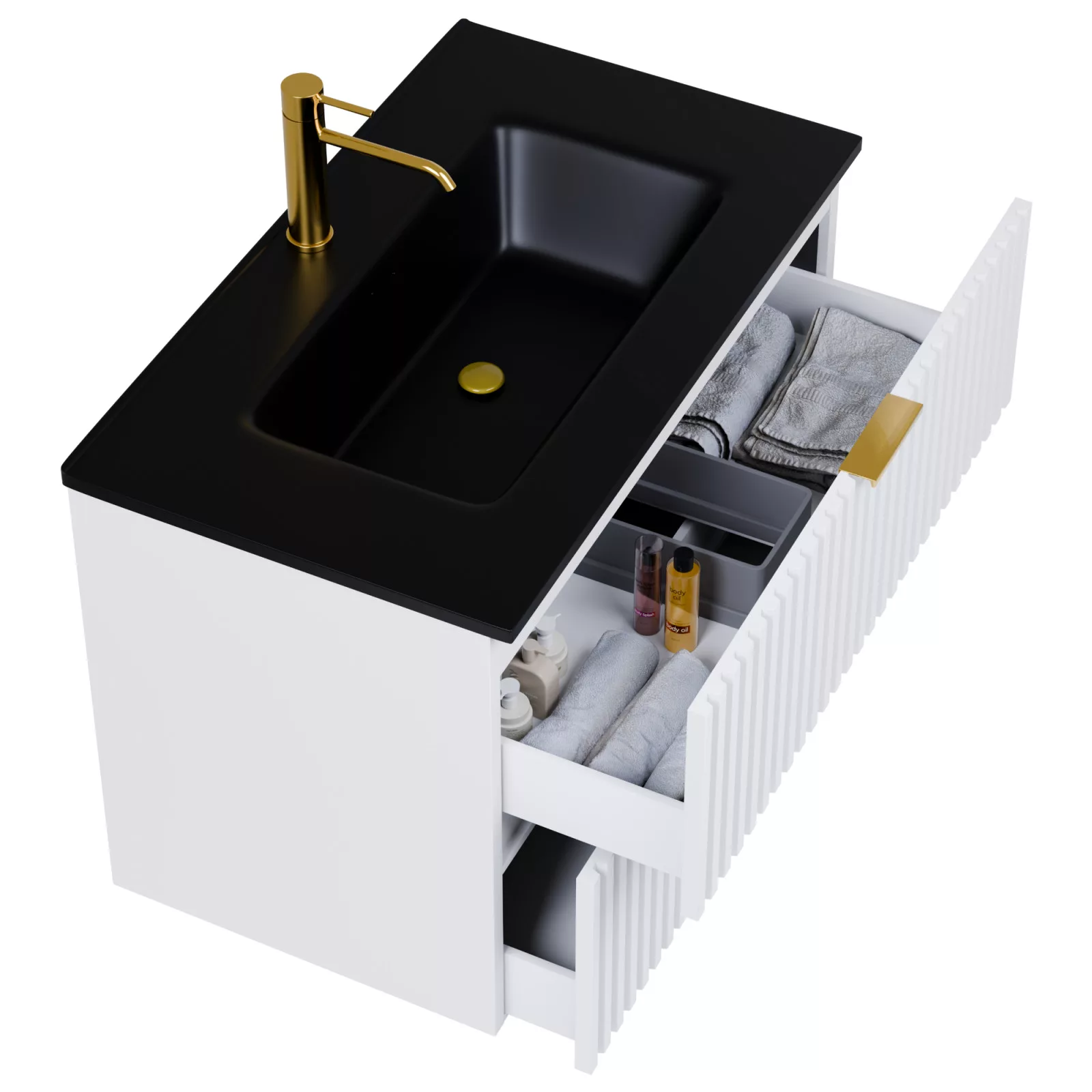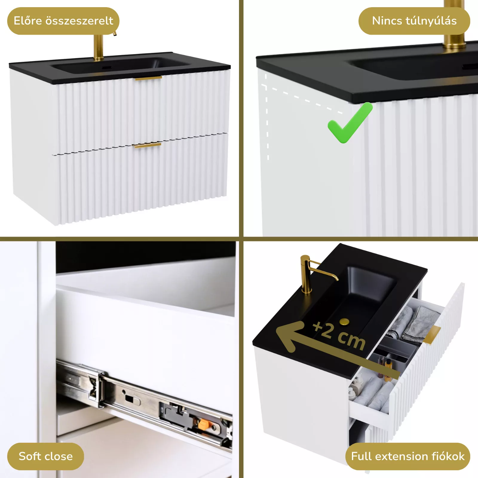 A fiókok bástyás kialakításának köszönhetően teljesen új szintre emeli a a fürdűszobáját, megteremtve a modern és kifinomult megjelenést.