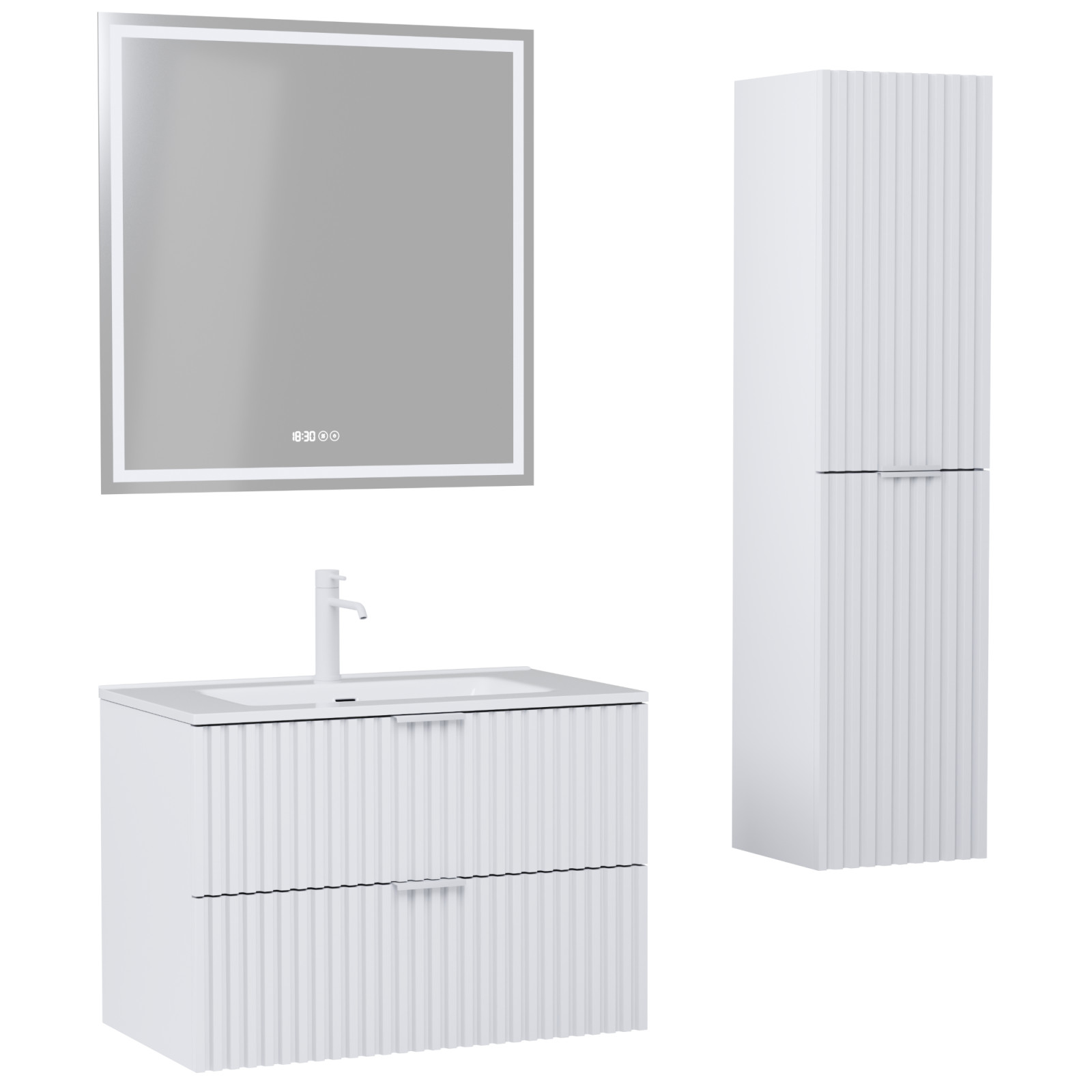 Ravello Matt White 60 komplett fürdőszoba bútor szett, matt fehér fogantyúkkal