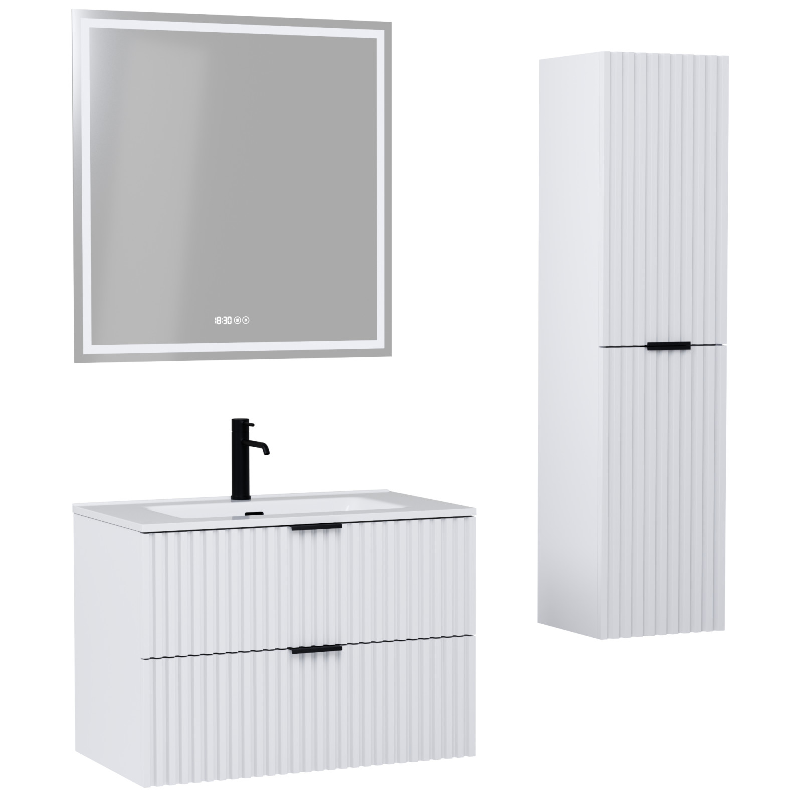 Ravello Matt White 60 komplett fürdőszoba bútor szett, matt fekete fogantyúkkal