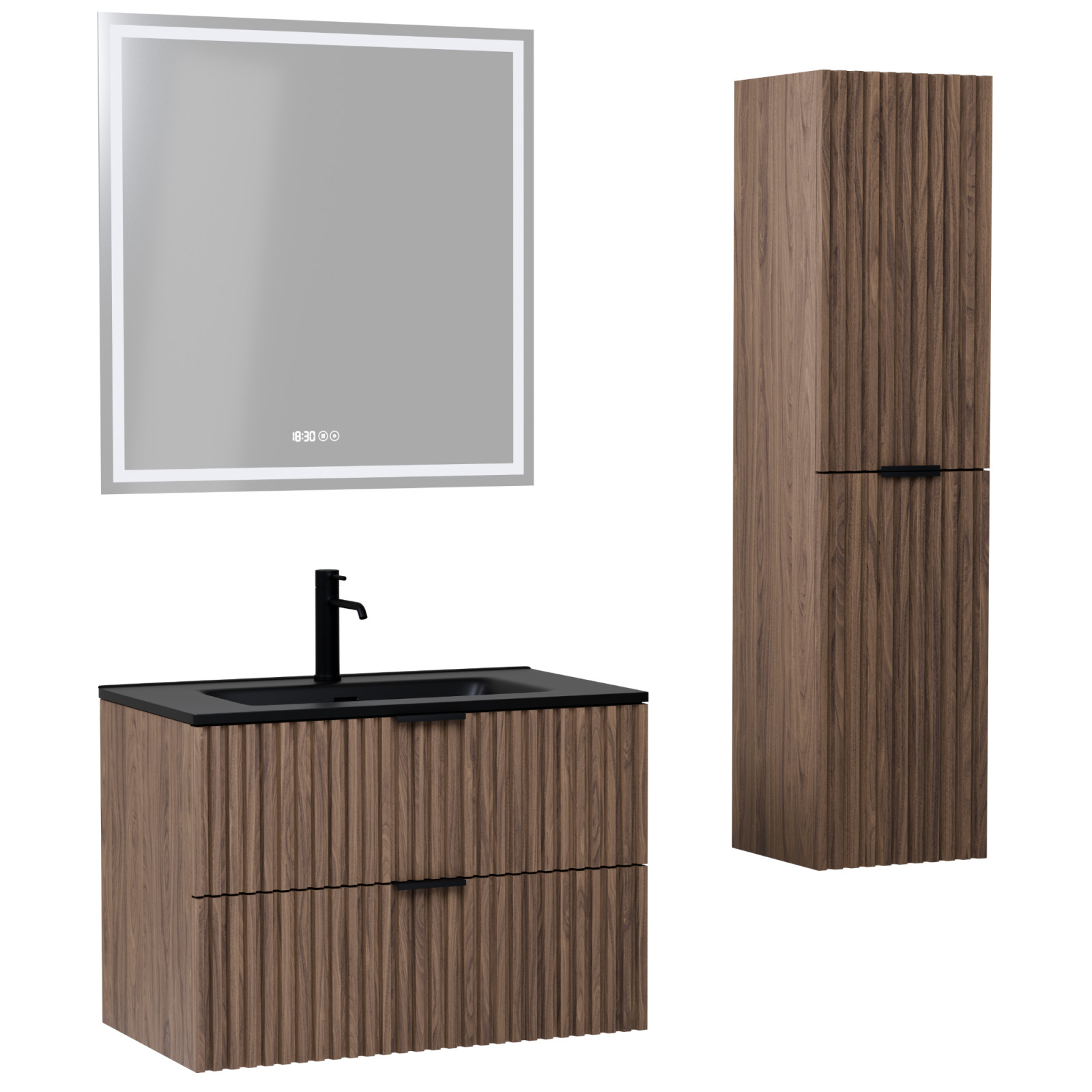 Napjainkban a praktikum mellett a fürdőszoba esztétikus megjelenése is fontos szempont. A függesztett bútorok egyre elterjedtebbé válnak, mivel számos előnnyel rendelkeznek, ide sorolható a modern, könnyed megjelenés és az egyszerű tisztítás . A függesztett fürdőszobai bútorok a klasszikus és modernebb stílusú fürdőszobákban is megállják a helyüket egyaránt. Nagyfokú rugalmasság jellemzi őket, mivel szinte bárhol elhelyezhetők a fürdőszobán belül. További előnyük, hogy soft close (csillapítós) zsanérral felszereltek, így becsukáskor az ajtó vagy fiók finoman záródik be, csökkentve a terhelést és növelve az élettartamot . A szekrény fehér és matt fekete mosdóval, illetve mosdópulttal is szabadon kombinálható ízlés szerint. A teljesség érdekében a mosdószekrényekhez illő LED okostükröt és magasszekrényt is választhatunk, hogy a fürdőszobában lévő bútorok egy szemet gyönyörködtető egységet alkossanak.