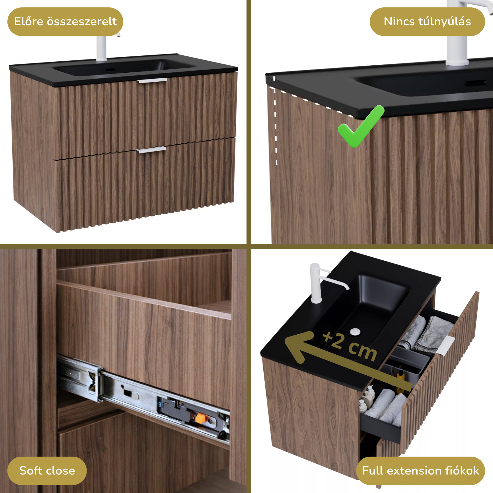 A bútort összeszerelve szállítjuk ki, így Önnek csak a mosdót és a fiók frontot kell ráhelyeznie!