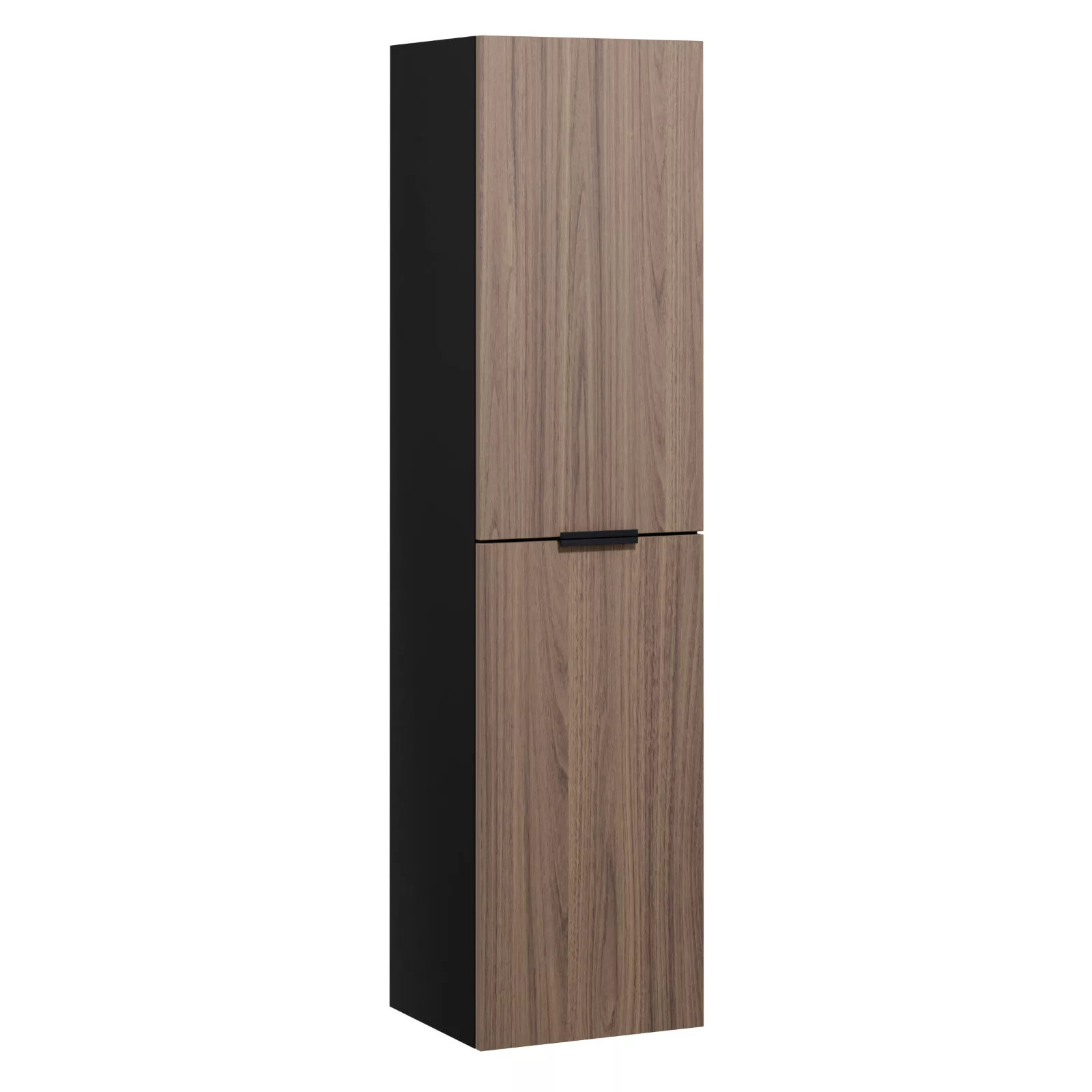 matt fekete magas szerkény, tölgyfa színű frontpanellel