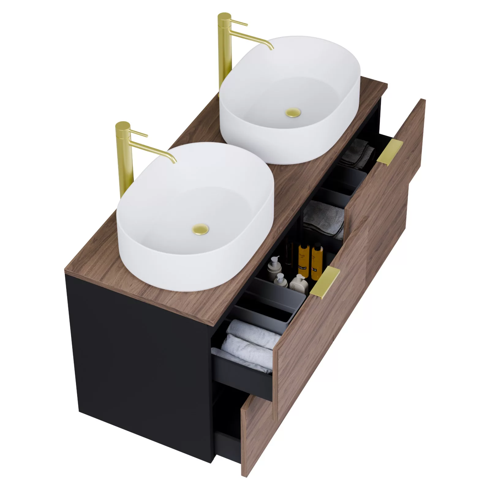 Salerno Black-Oak 120 komplett fürdőszoba bútor szett, szálcsiszolt arany fogantyúkkal