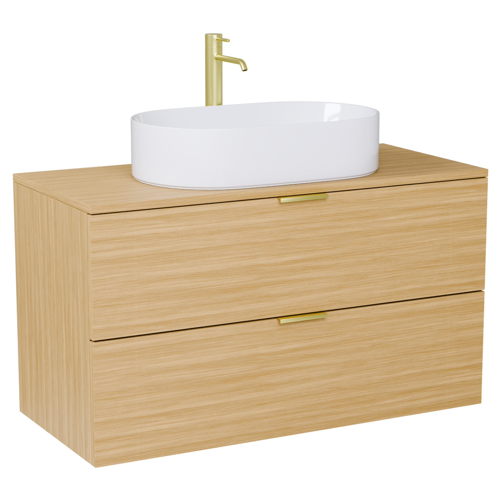 Salerno Hickory 100 mosdószekrény pulttal, szálcsiszolt arany fogantyúkkal