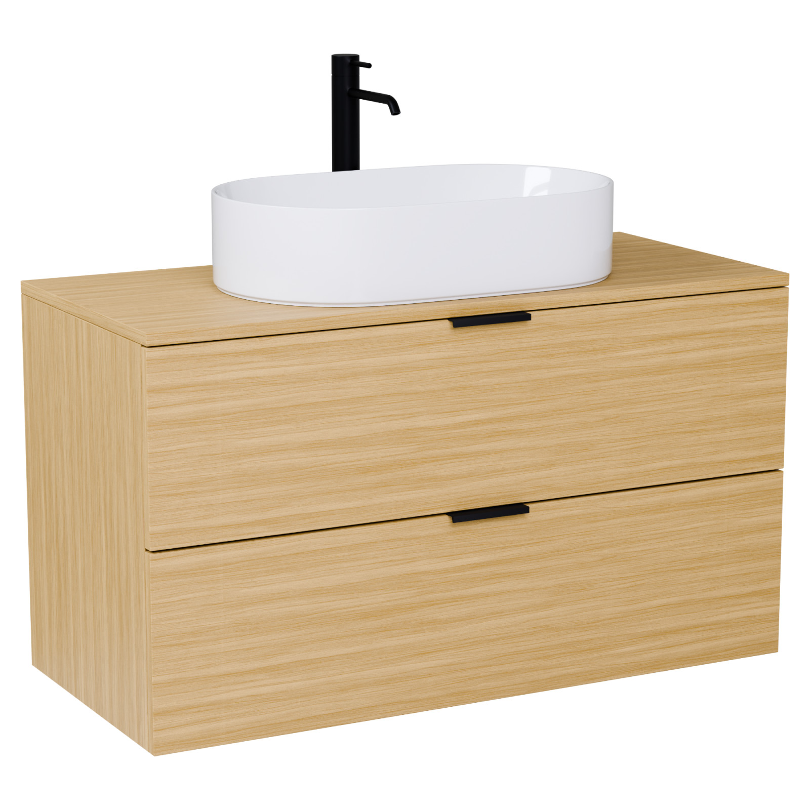 Salerno Hickory 100 mosdószekrény pulttal, matt fekete fogantyúkkal