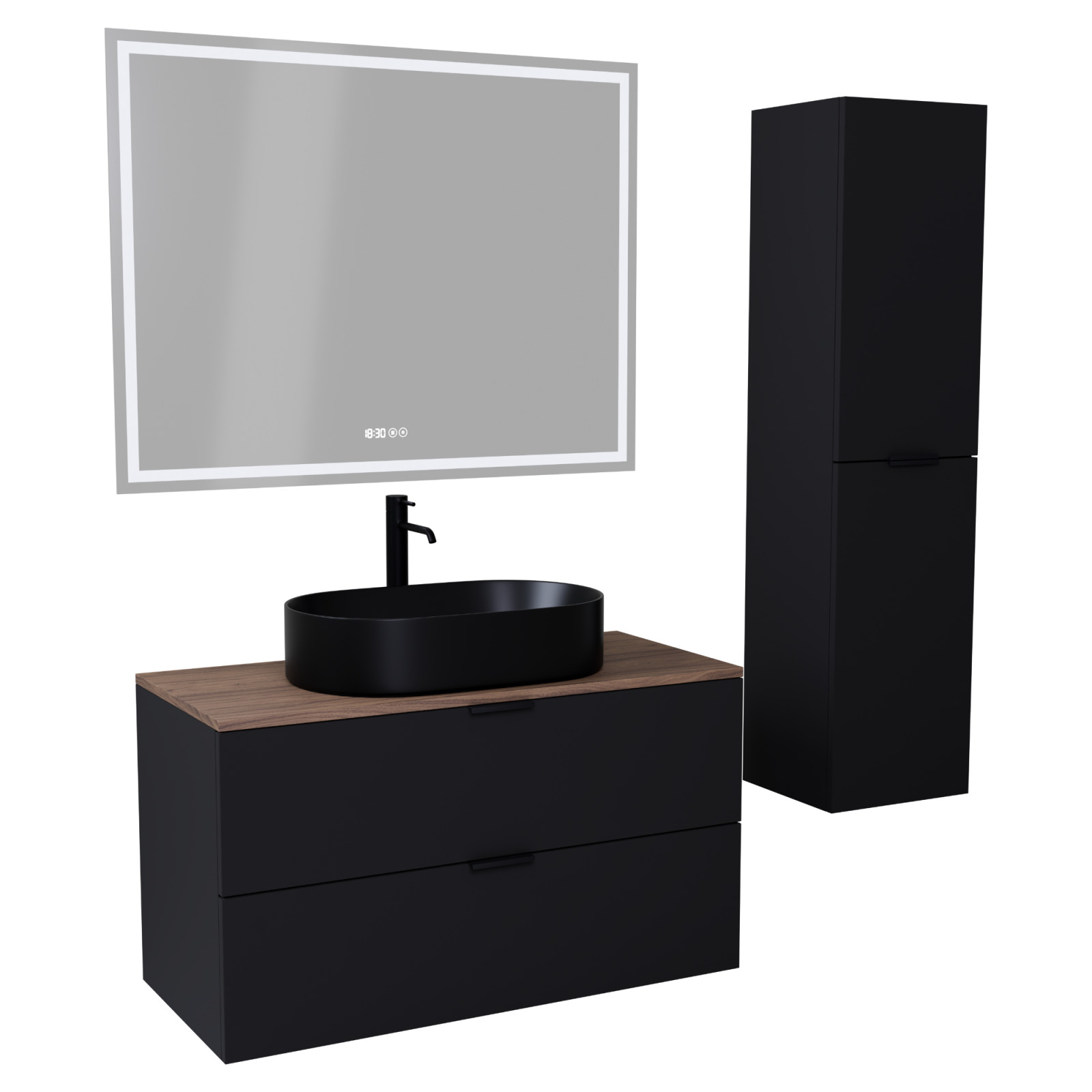 Salerno Matt Black 100 komplett fürdőszoba bútor szett, matt fekete fogantyúkkal
