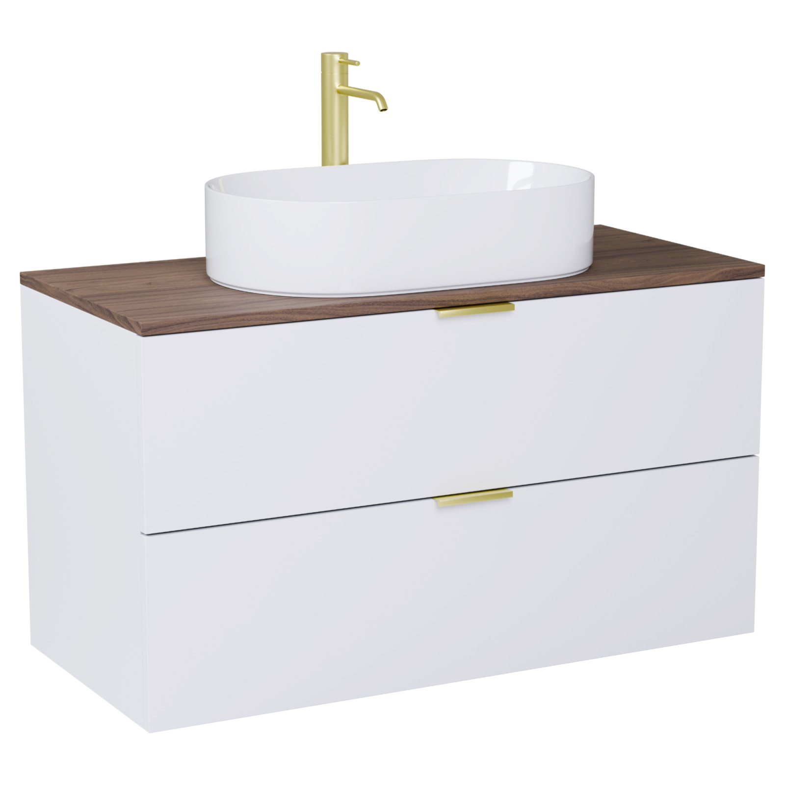 Salerno Matt White 100 komplett fürdőszoba bútor, szálcsiszolt arany fogantyúkkal