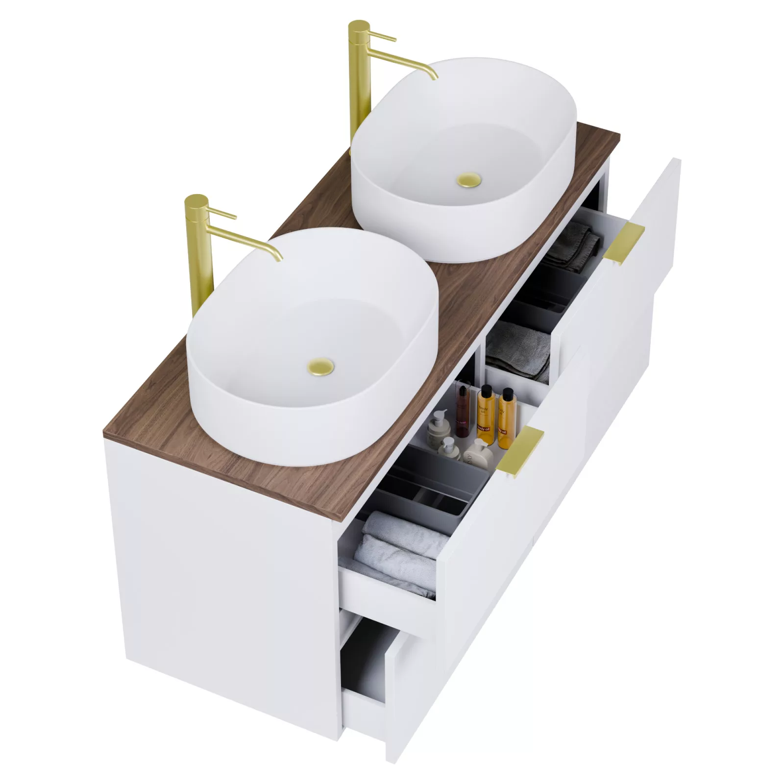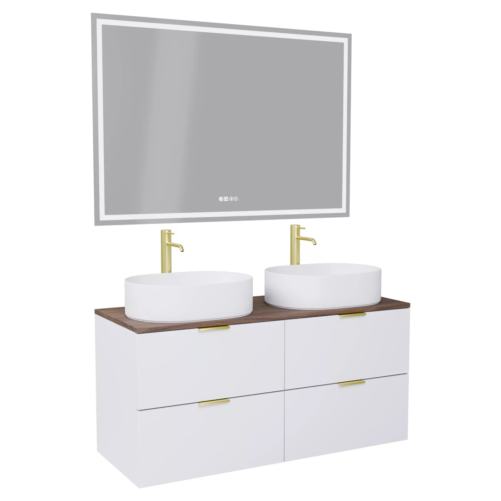 Salerno Matt White 120 komplett fürdőszoba bútor, szálcsiszolt arany fogantyúkkal