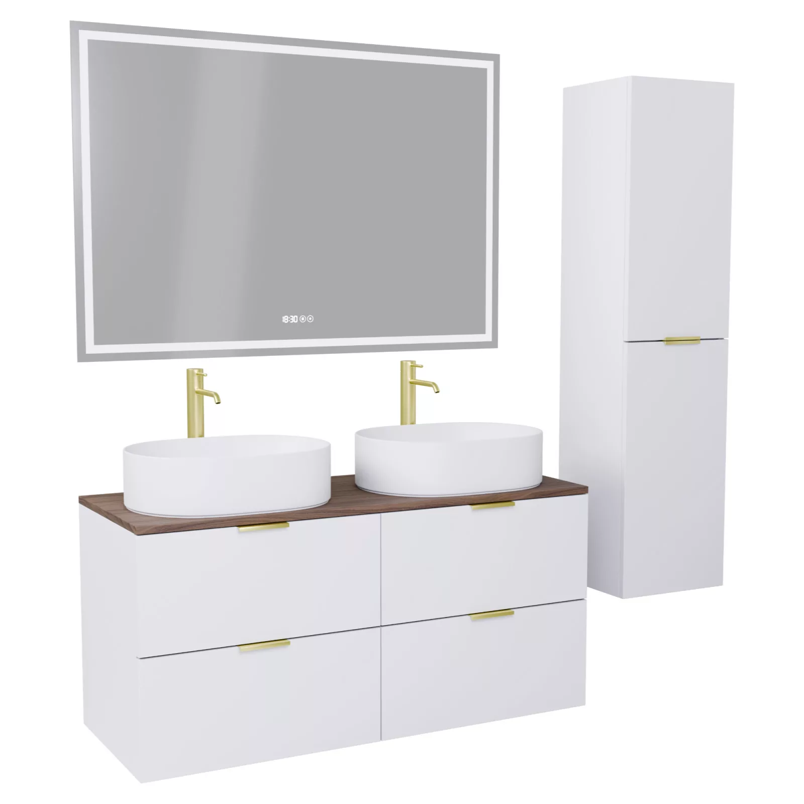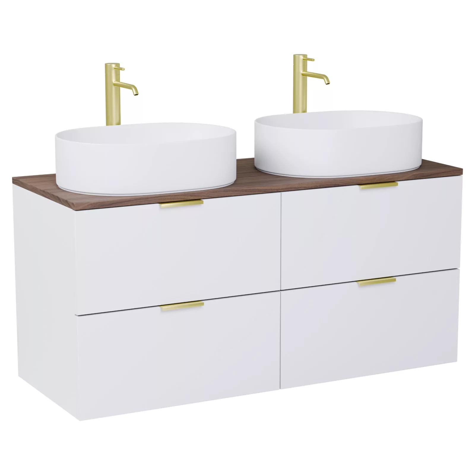 Salerno Matt White 120 komplett fürdőszoba bútor szett, szálcsiszolt arany fogantyúkkal