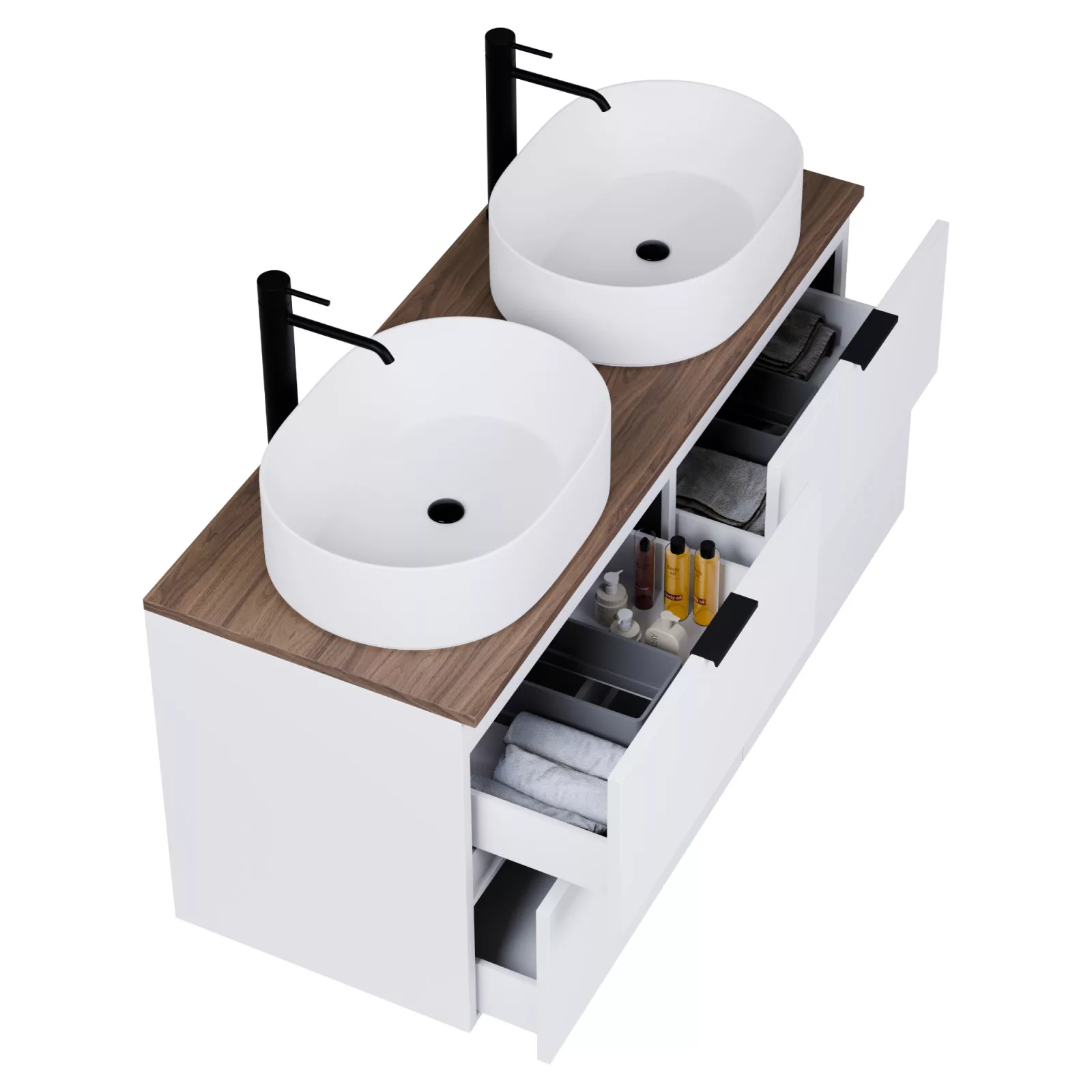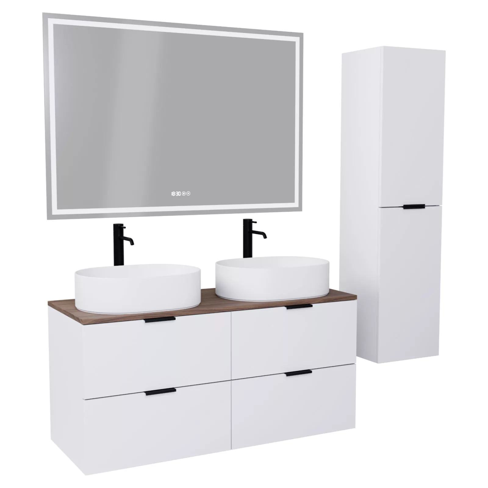 Salerno Matt White 120 komplett fürdőszoba bútor szett, matt fekete fogantyúkkal