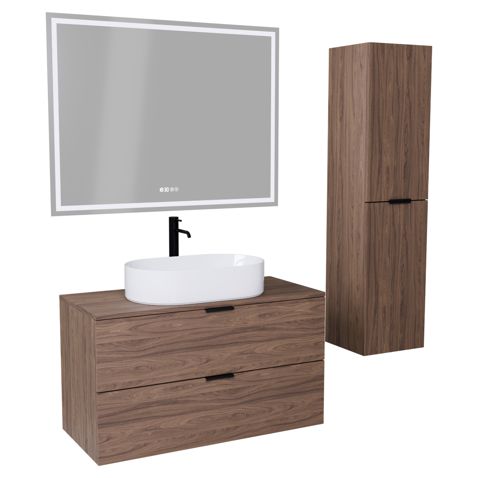 Szett tartalma: Mosdószekrény mosdópulttal (A mosdókagyló és a csaptelep nem tartozék!), okos tükör, magasszekrény