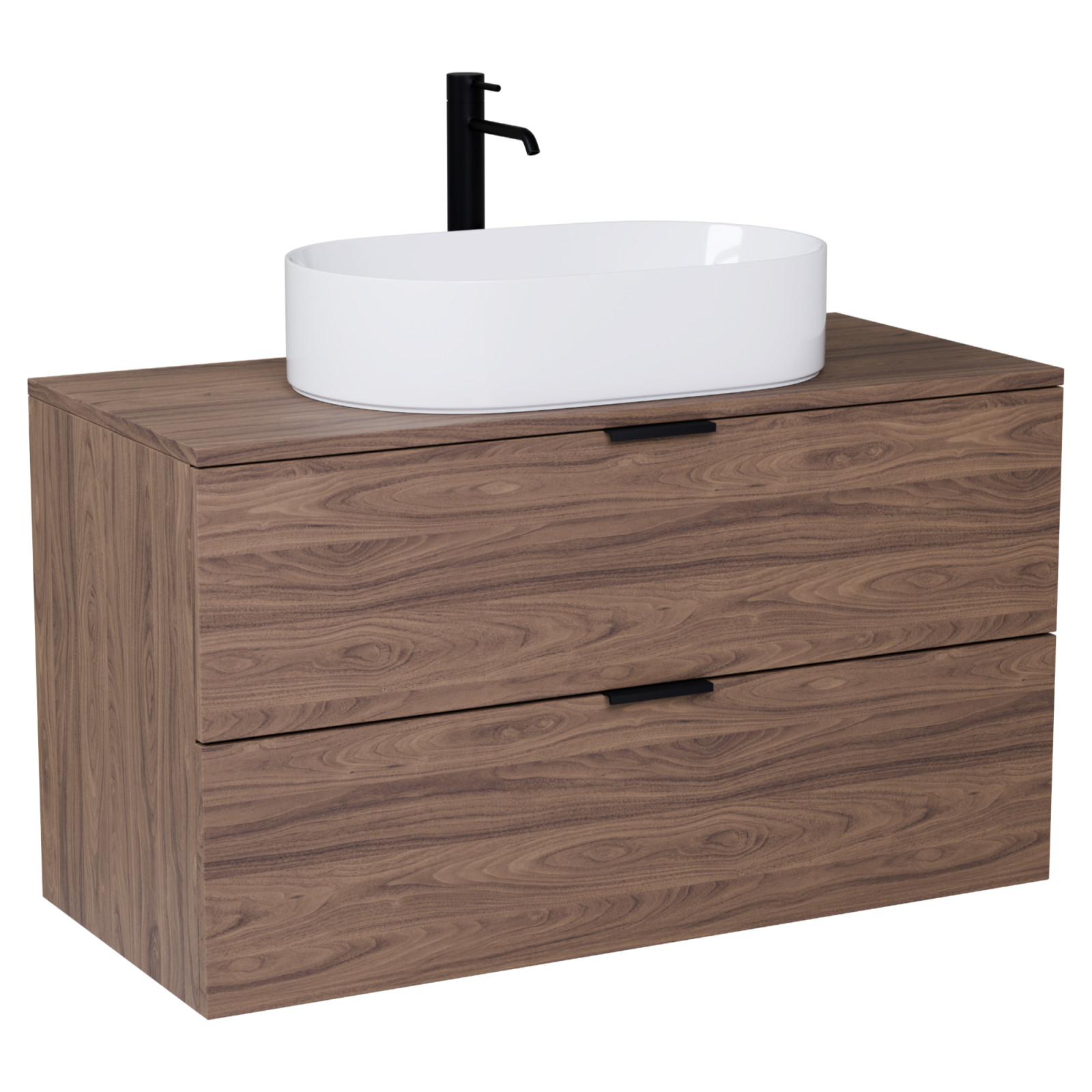 Salerno Oak 100 komplett fürdőszoba bútor szett, matt fekete fogantyúkkal