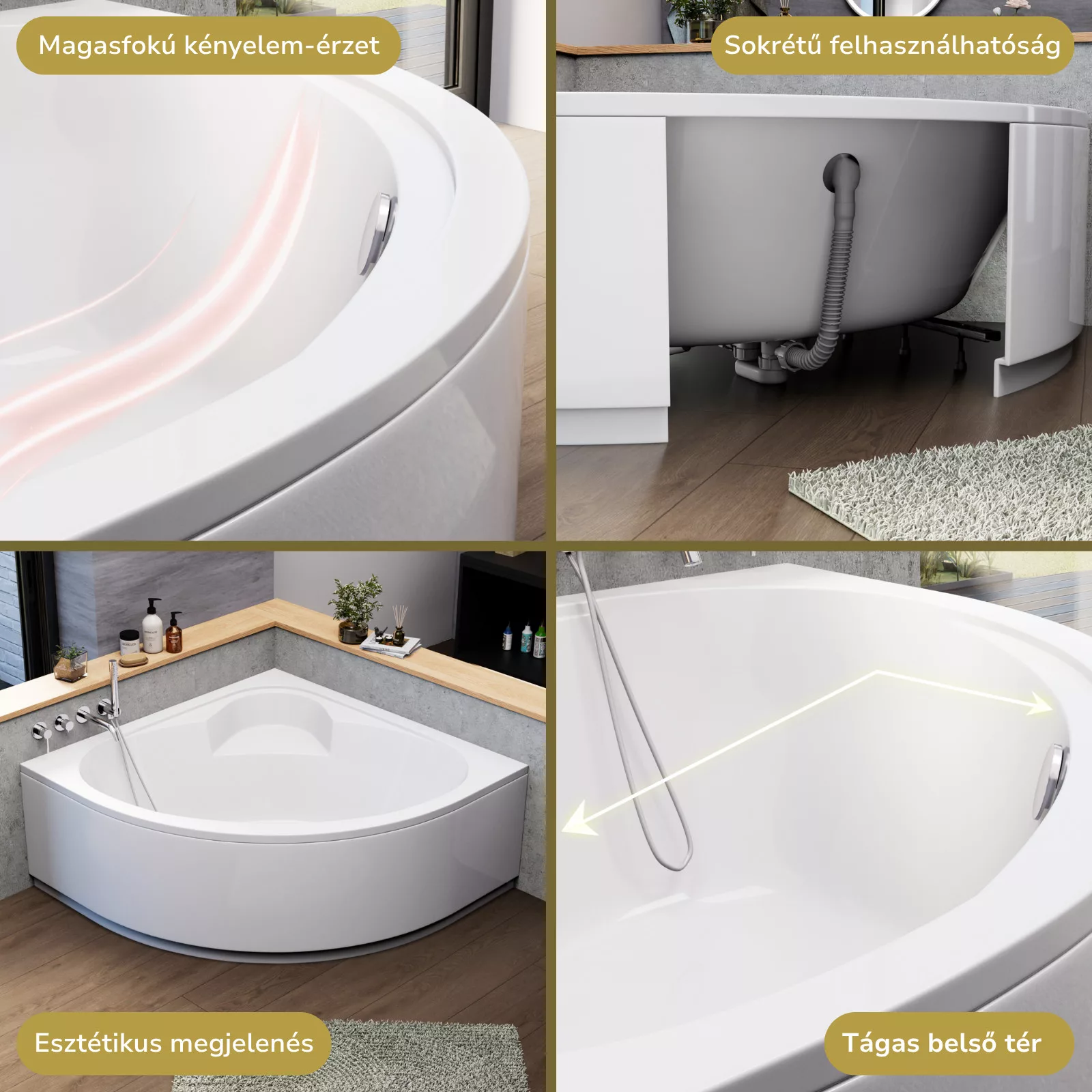 Szélesség: 150 cm Hosszúság: 150 cm Magasság: 40 cm Szín: Hófehér Felület: Tükörsima, antibakteriális Kád anyaga: Akril Kád felszereltsége: Lábbal és előlappal Garancia: 10 év Az általunk legfontosabbnak vélt tulajdonságok térben álló kádunknál:
