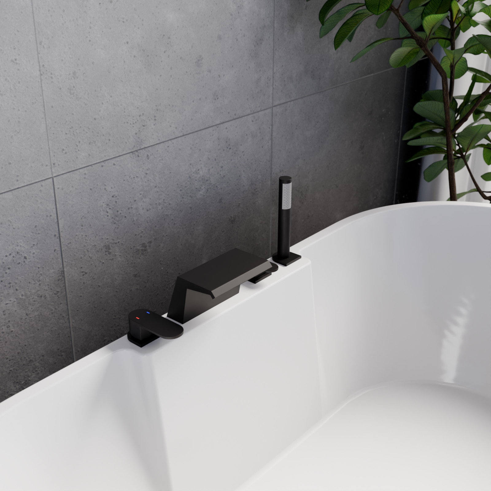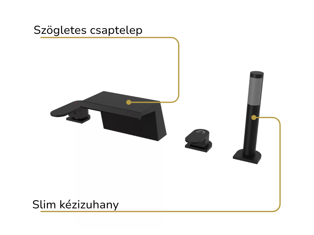 HD Spirit Black perembe építhető négylyukú kádtöltő csaptelep