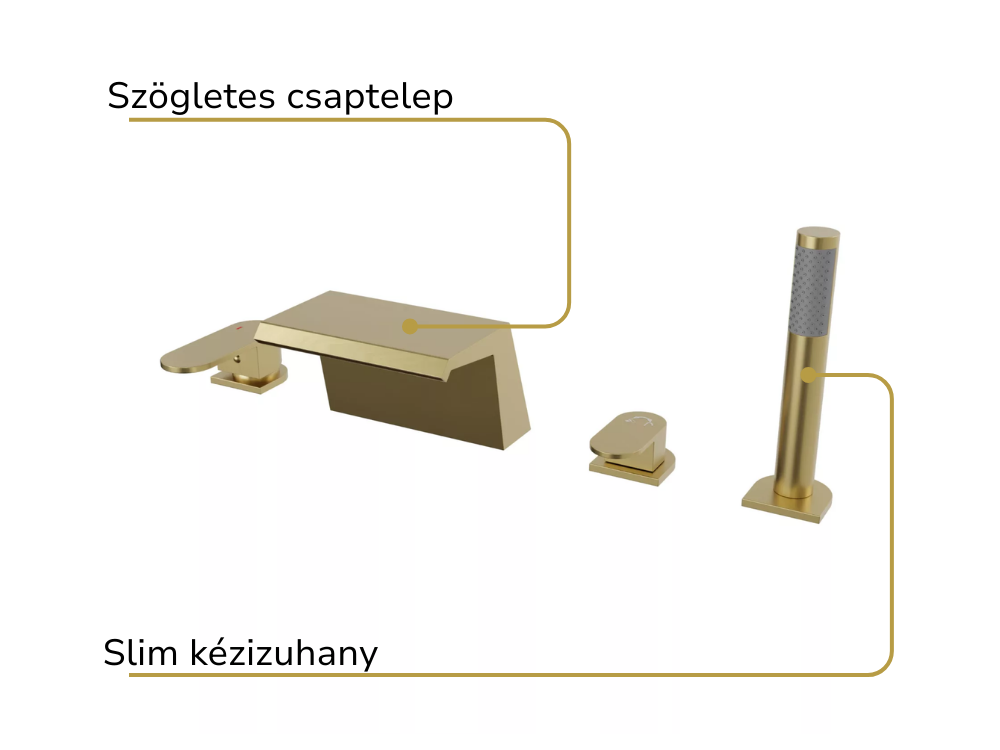 HD Spirit Brushed Gold perembe építhető négylyukú kádtöltő csaptelep